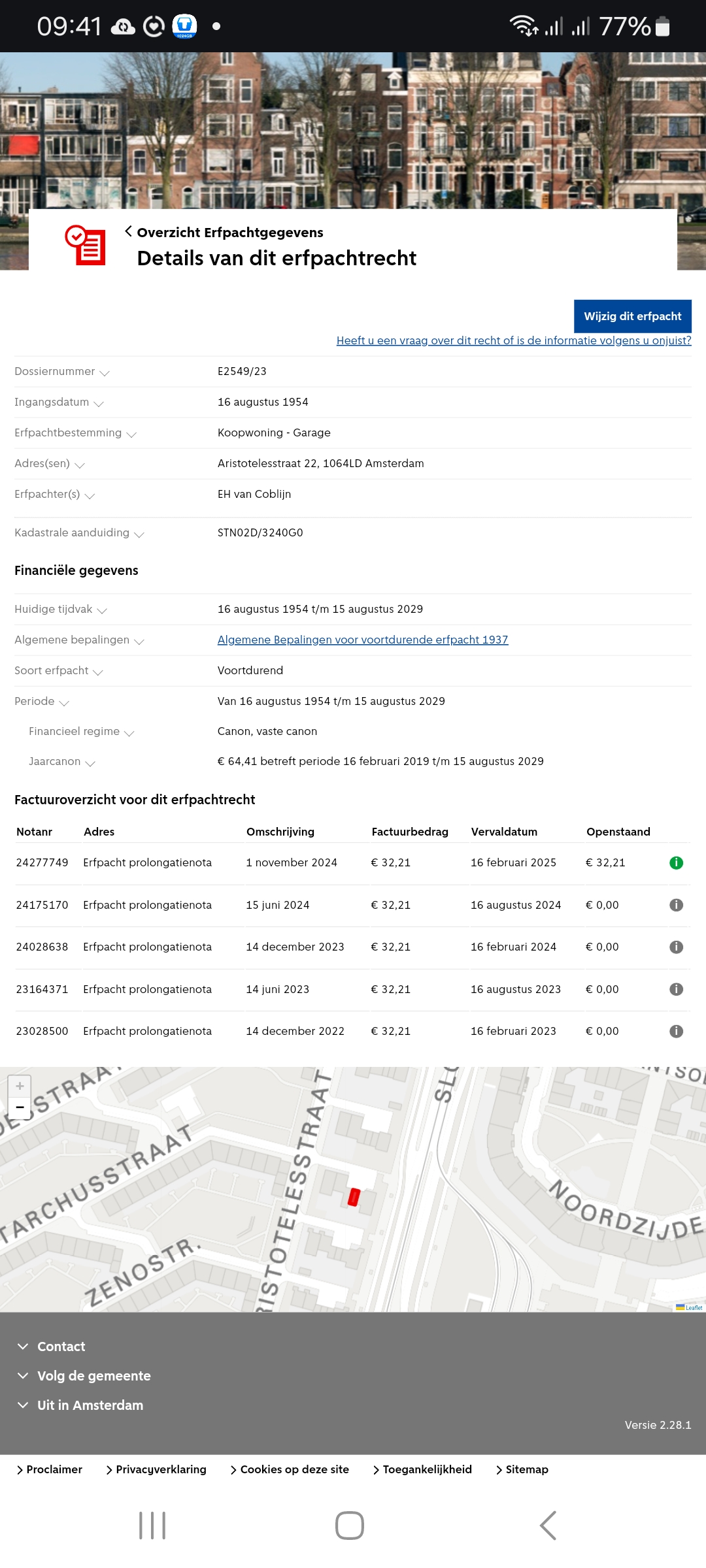 • Leasehold canon is € 66 per year (until 15-08-2029);