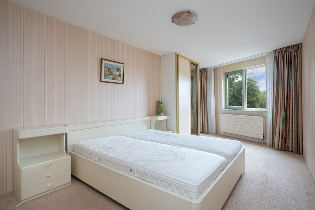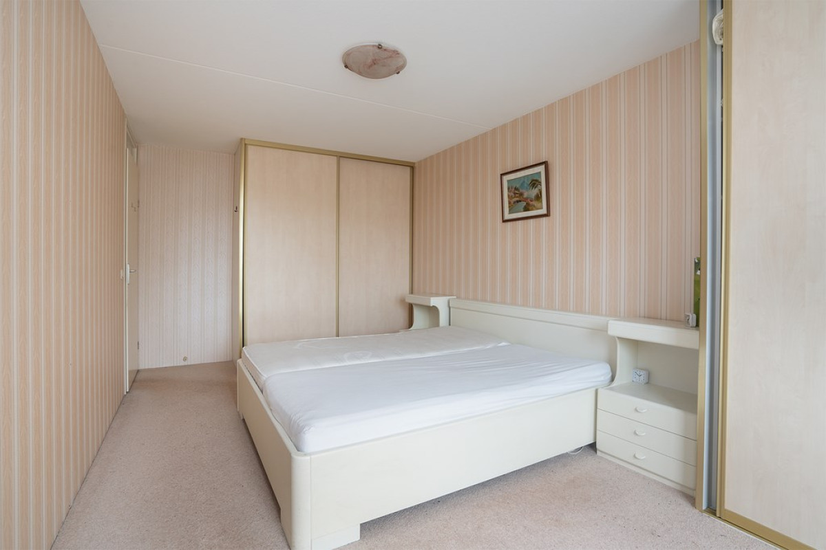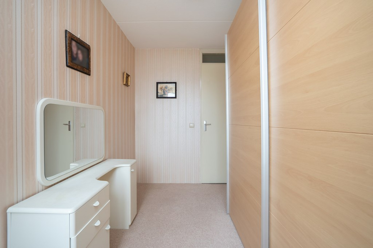 De slaapkamers zijn momenteel ingericht als een ruime hoofdslaapkamer, compleet met een vaste kast voor al je opbergbehoeften, en een andere kamer die is omgetoverd tot een praktische inloopkast. Hier heb je voldoende ruimte om je kleding en persoonlijke spullen netjes georganiseerd te houden, waardoor je slaapkamer een plek voor rust blijft.