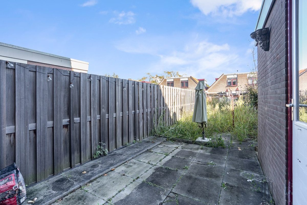 Hoewel de achtertuin enige renovatie vereist, biedt het veel privacy dankzij de houten schuttingen. Zie het als een leeg canvas klaar voor jouw tuinontwerp.