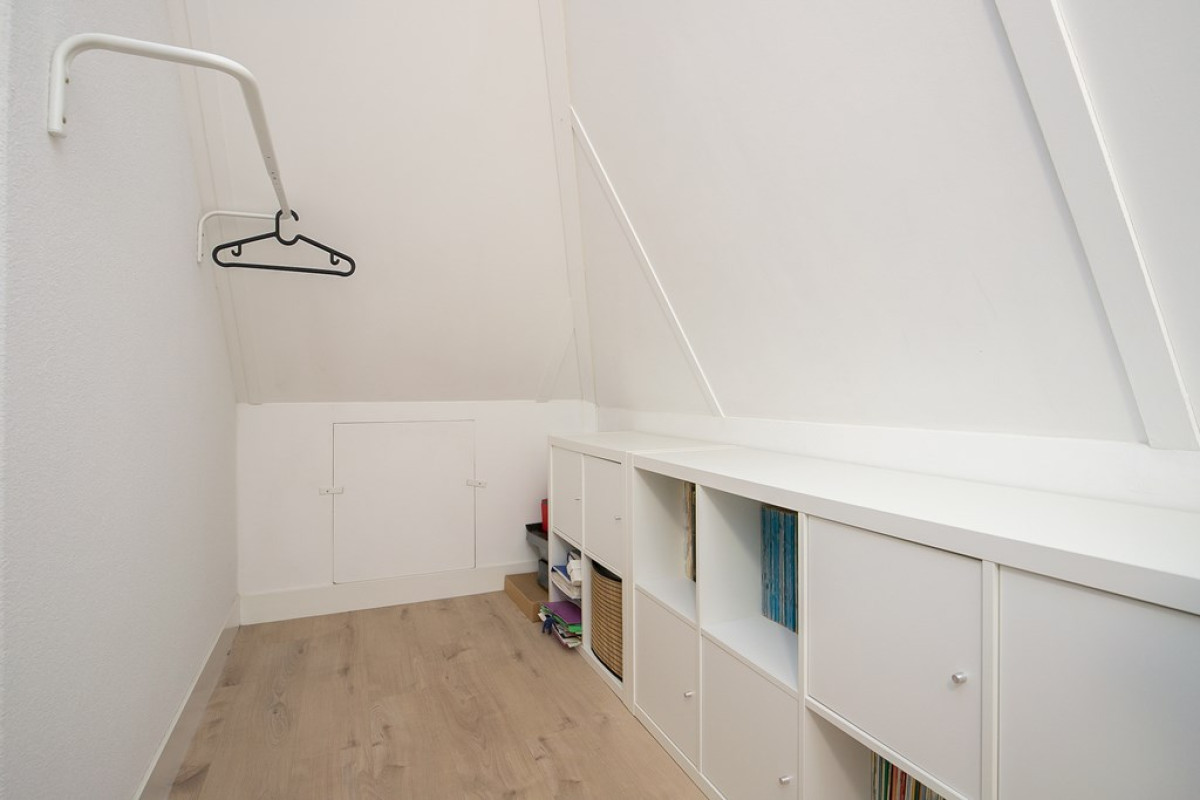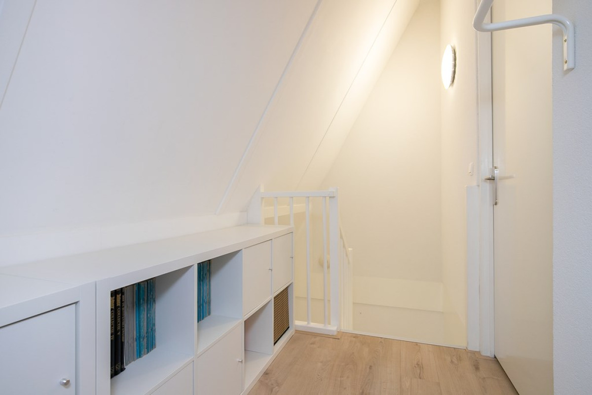 Als je de tweede verdieping betreed, kom je op de voorzolder/overloop terecht waar je opbergruimte kunt vinden.
