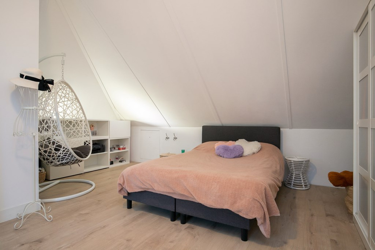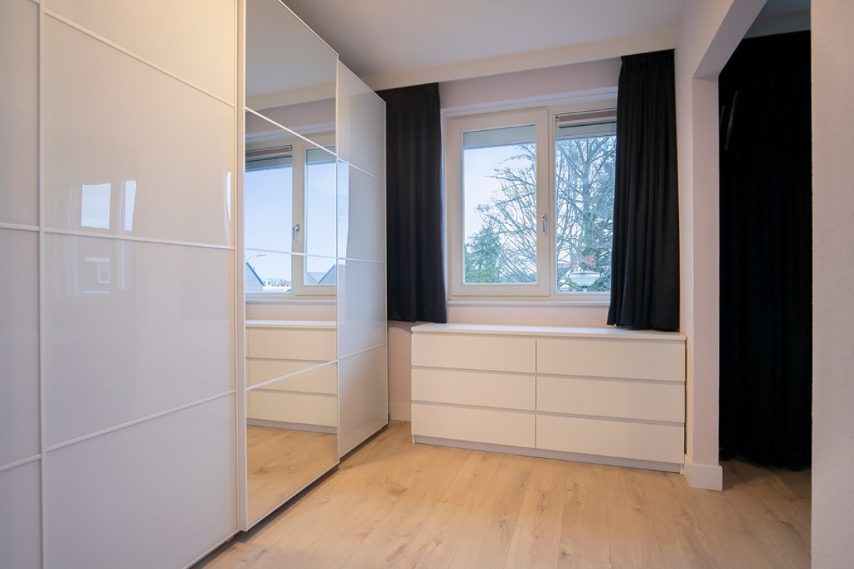 Aan de voorzijde van de woning zijn van twee slaapkamers een grote slaapkamer (16m²) gemaakt. Op een eenvoudige manier kunnen er weer twee slaapkamers gecreëerd worden.
