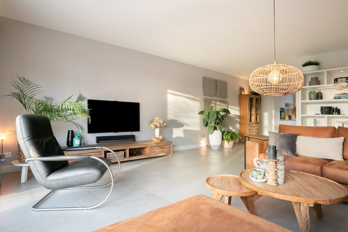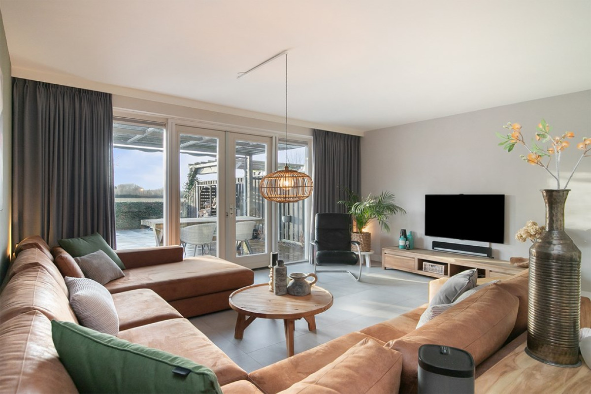 Bij het betreden van de ruim opgezette living valt meteen de aangename sfeer en lichtinval op.