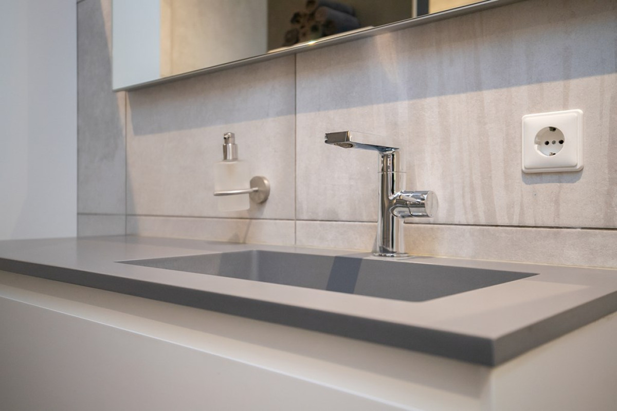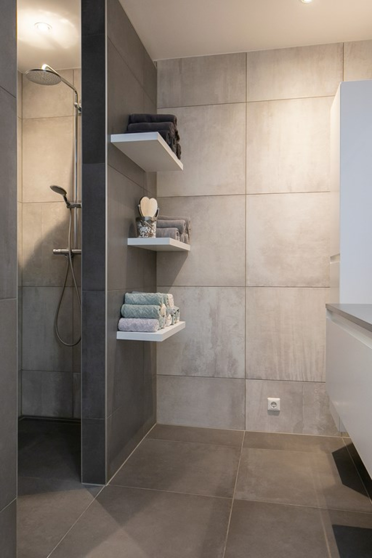 In de tot in de puntjes verzorgde badkamer is een ruime inloopdouche te vinden. Daarnaast is de badkamer volledig betegeld en voorzien van een toilet, wastafelmeubel en opbergkast.