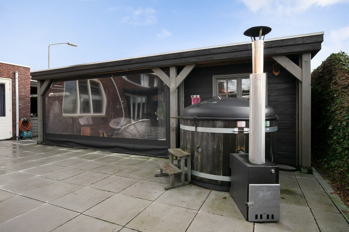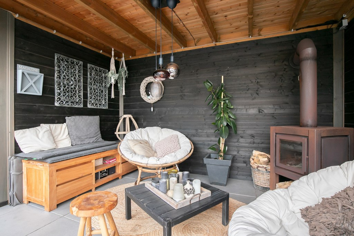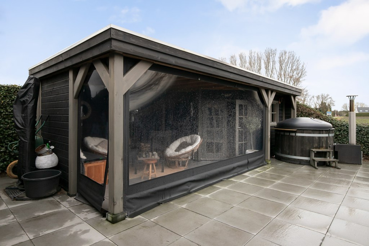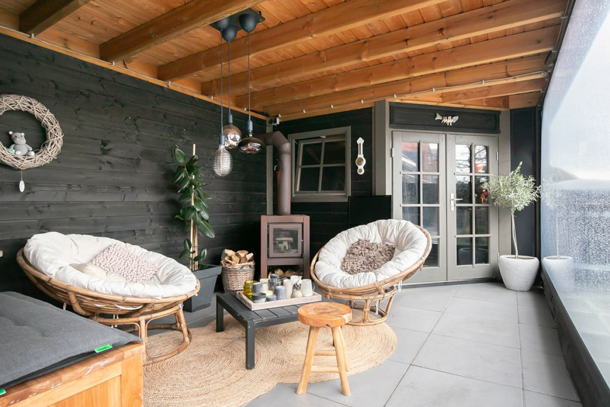 De veranda is afsluitbaar en i.c.m. een houtkachel kun je hier altijd fijn zitten.