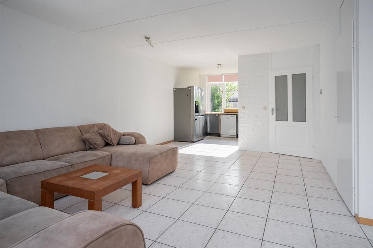 Laatstgenoemde is ruim en voornamelijk wit, op de rode kozijnen en houten plinten na. Op de vloer vind je grote witte plavuizen, die tevens al te zien waren in de hal.
