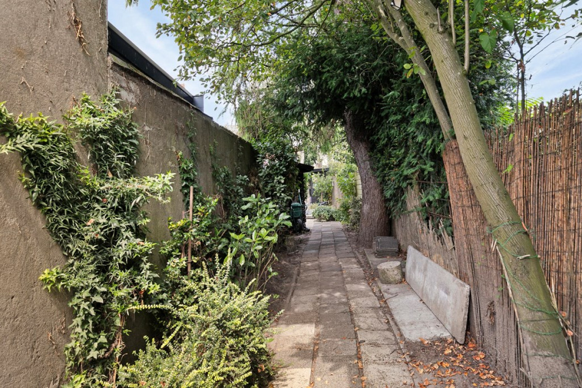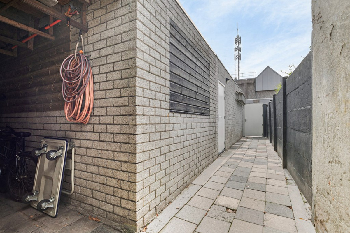 Naast de garagedeur is de tuin ook via een loopdeur te bereiken.