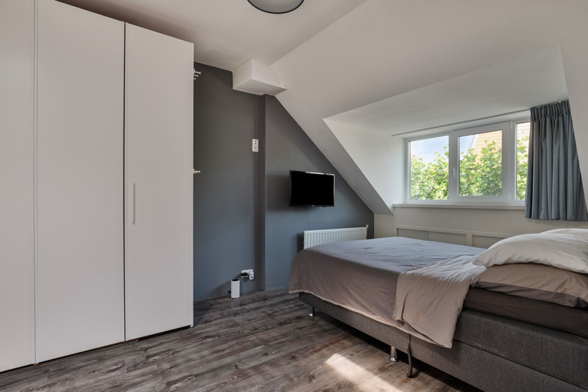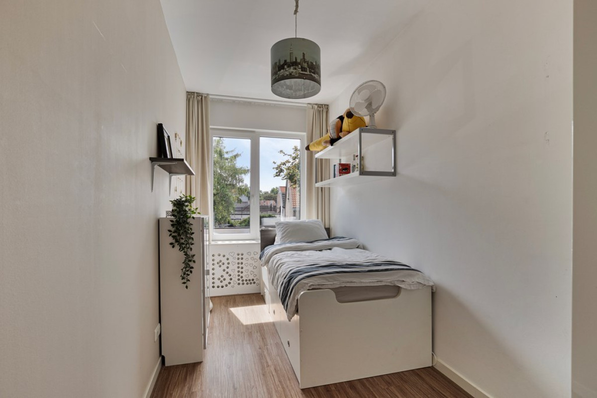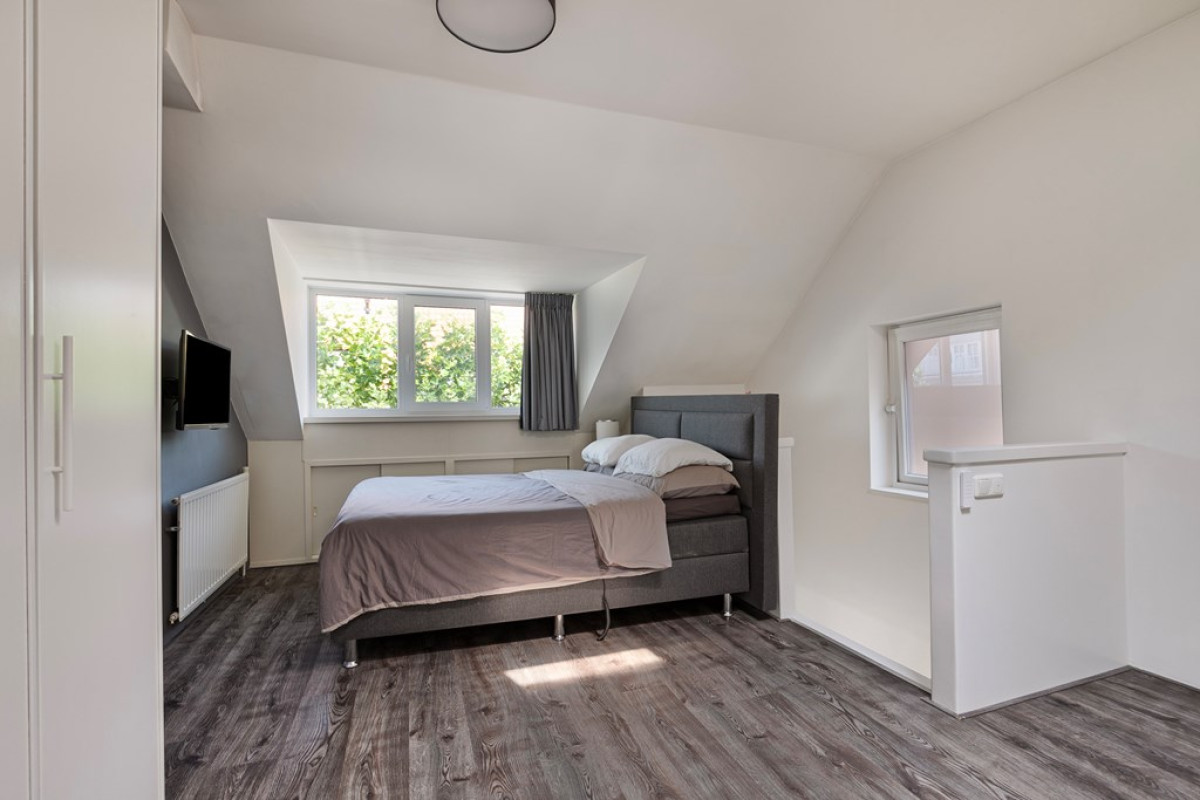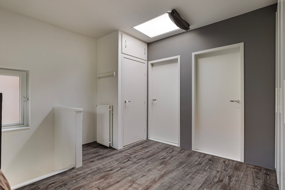 Vanuit deze slaapkamer bereik je de logeer/kinderkamer en de badkamer.