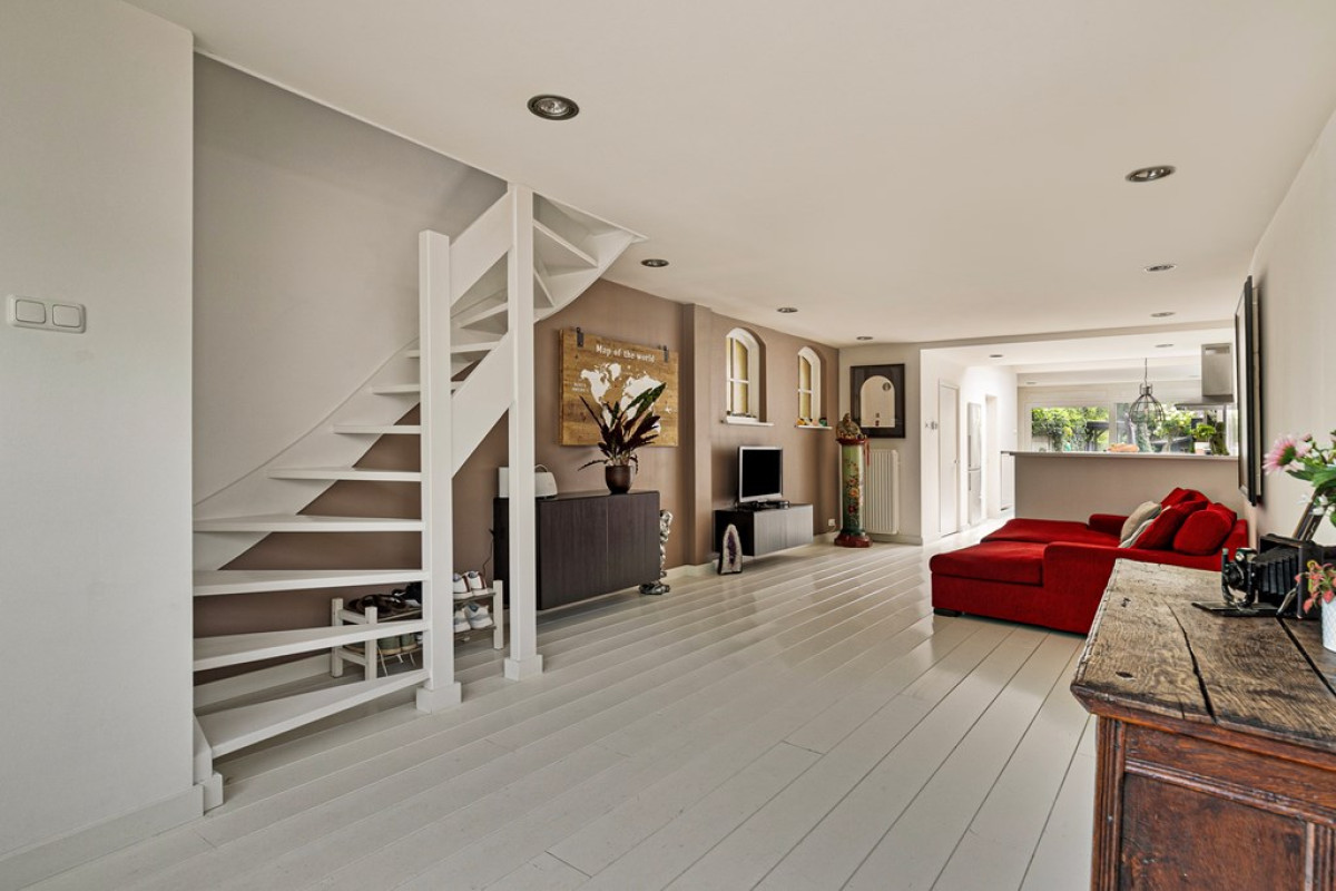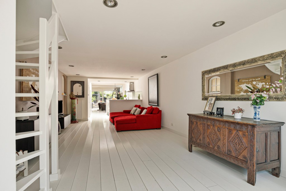 Van buiten is het al een plaatje, maar achter deze mooie gevel, word je compleet verrast met een gezellige woonkamer van maar liefst 19 meter lang met hierin een luxe open keuken. Daarnaast heeft dit huis een schitterende achtertuin van 40 meter diep. En alsof het nog niet genoeg is, is er ook nog een aangrenzende kantoorruimte/slaapkamer en een garage van 10 meter diep met een prive parkeerplaats aanwezig.