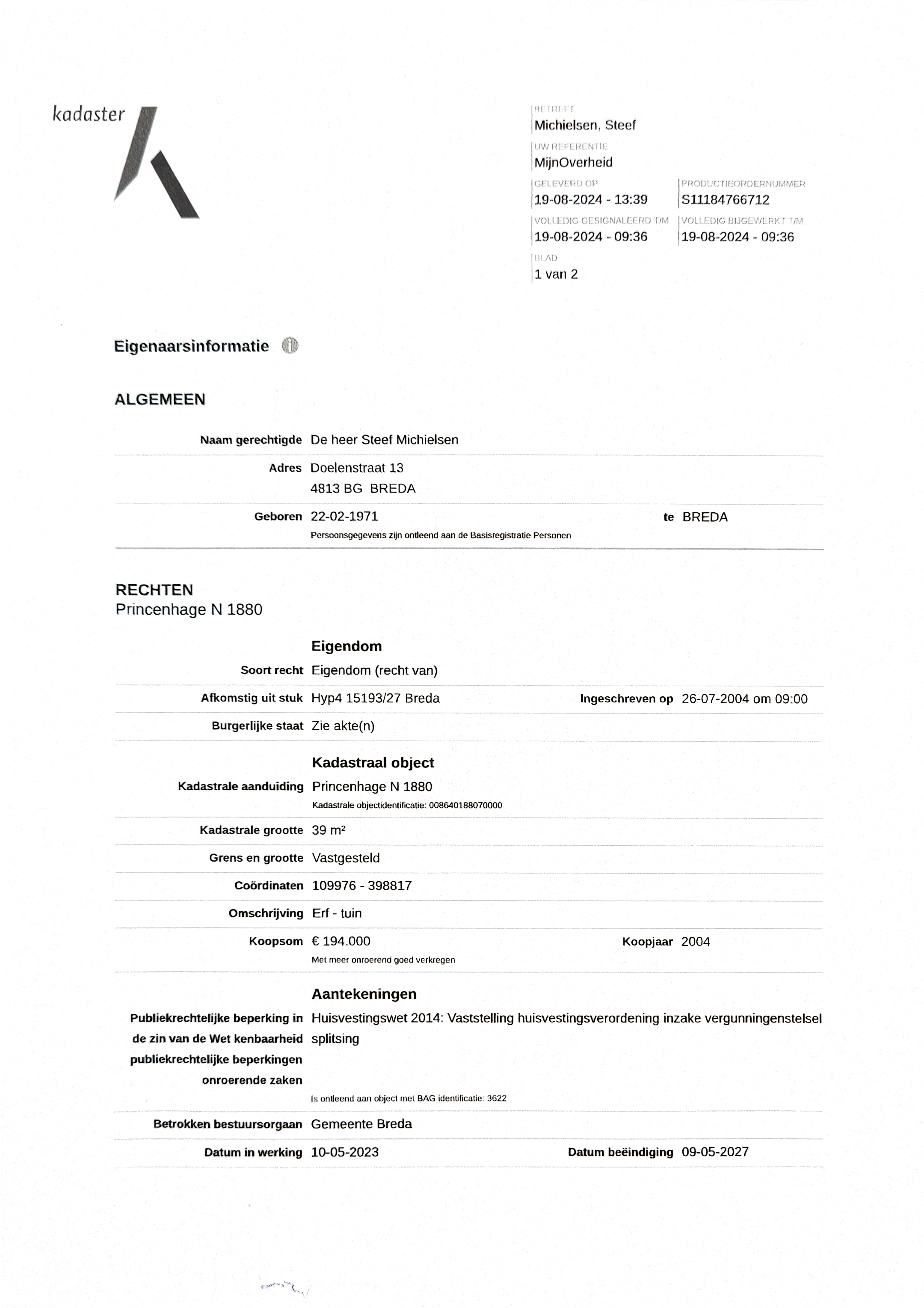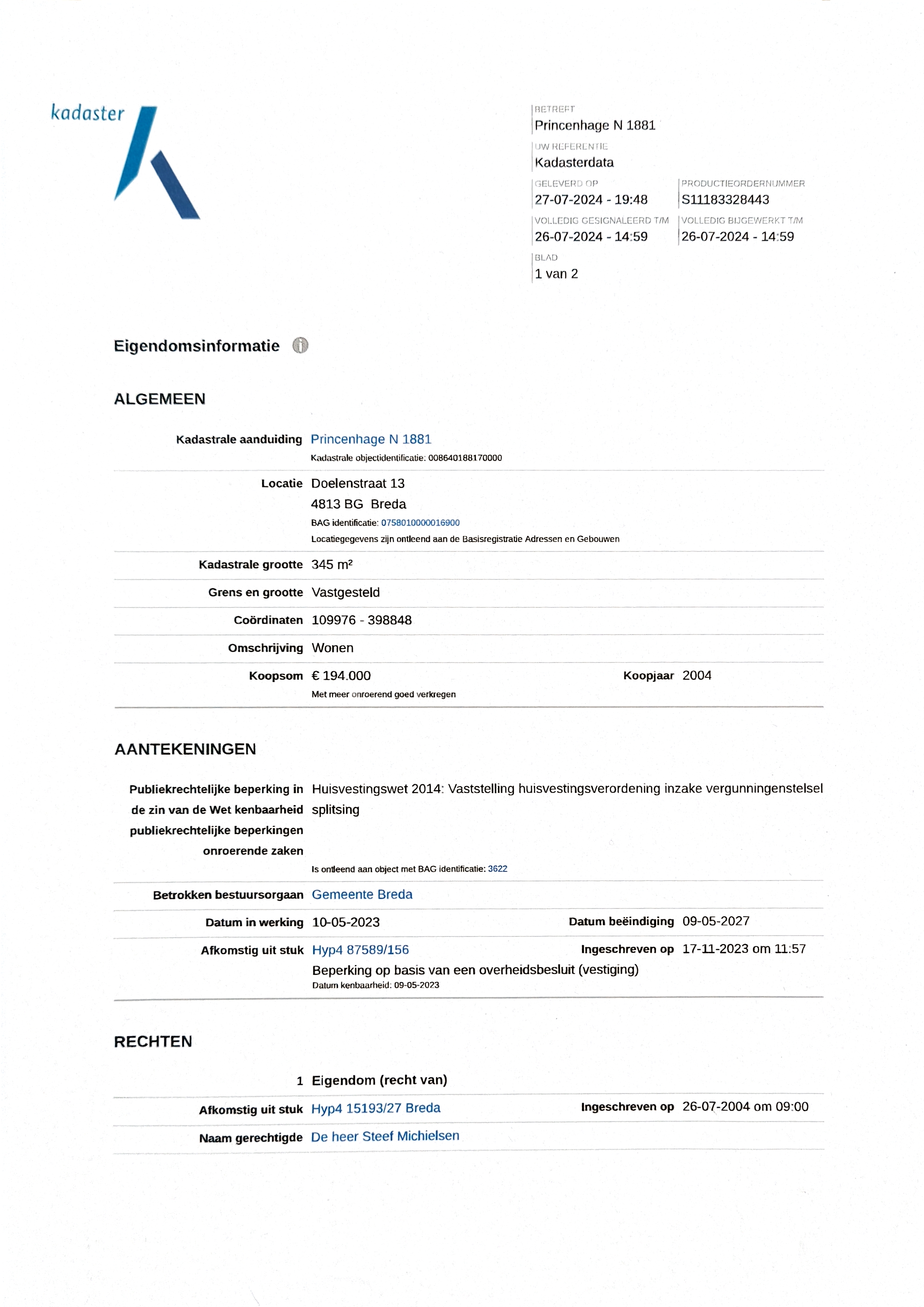 de verkoper aan ons ter hand gestelde gegevens en tekeningen. Derhalve kunnen wij geen