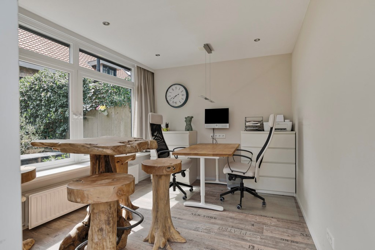 Aangrenzend aan het huis bevindt zich op dit moment het kantoor, deze is geïsoleerd en voorzien van verwarming dus ook voor andere doeleinden te gebruiken, zoals bijvoorbeeld slaapkamer, praktijkruimte, gameroom of speelkamer.