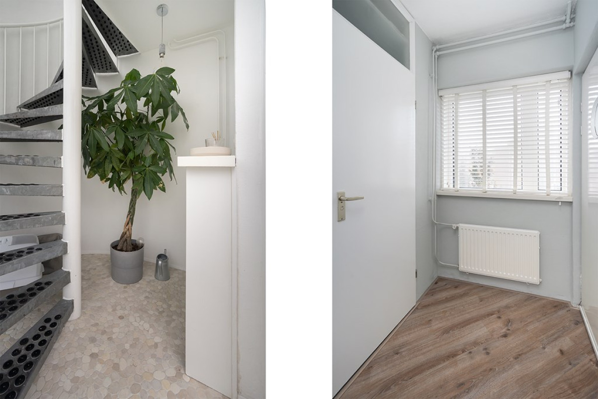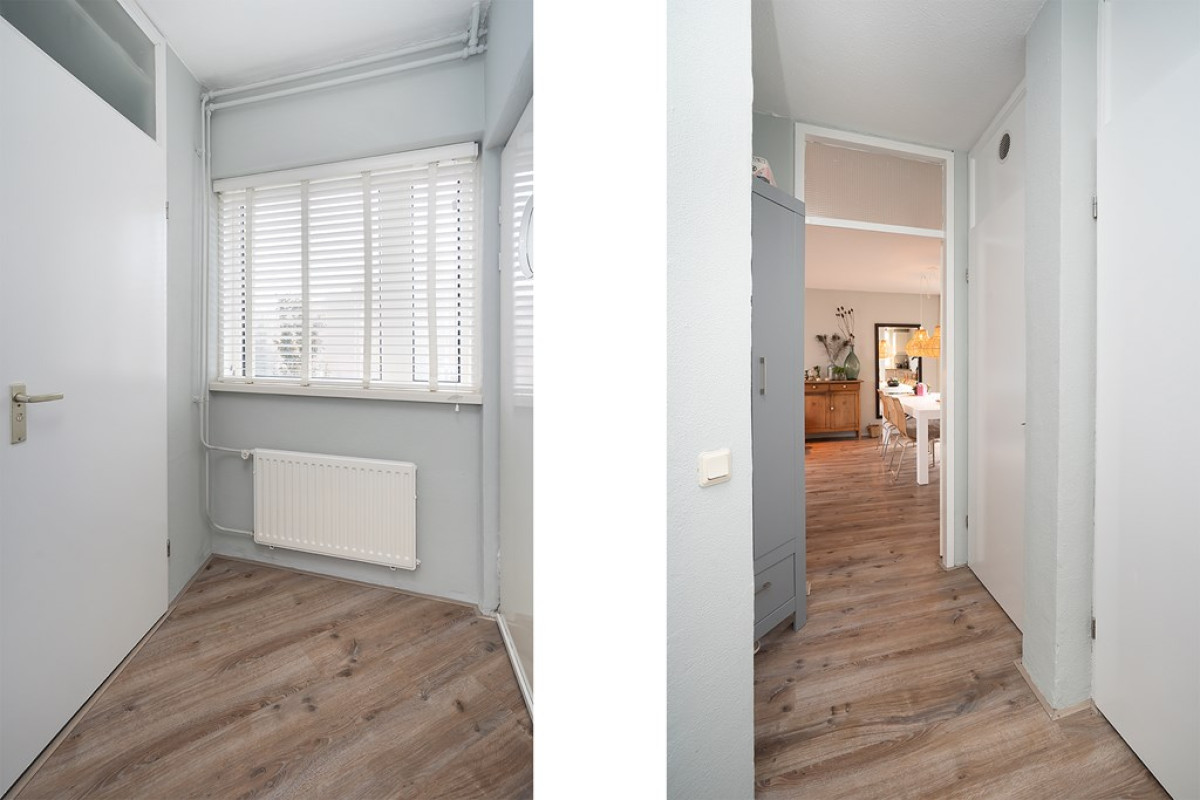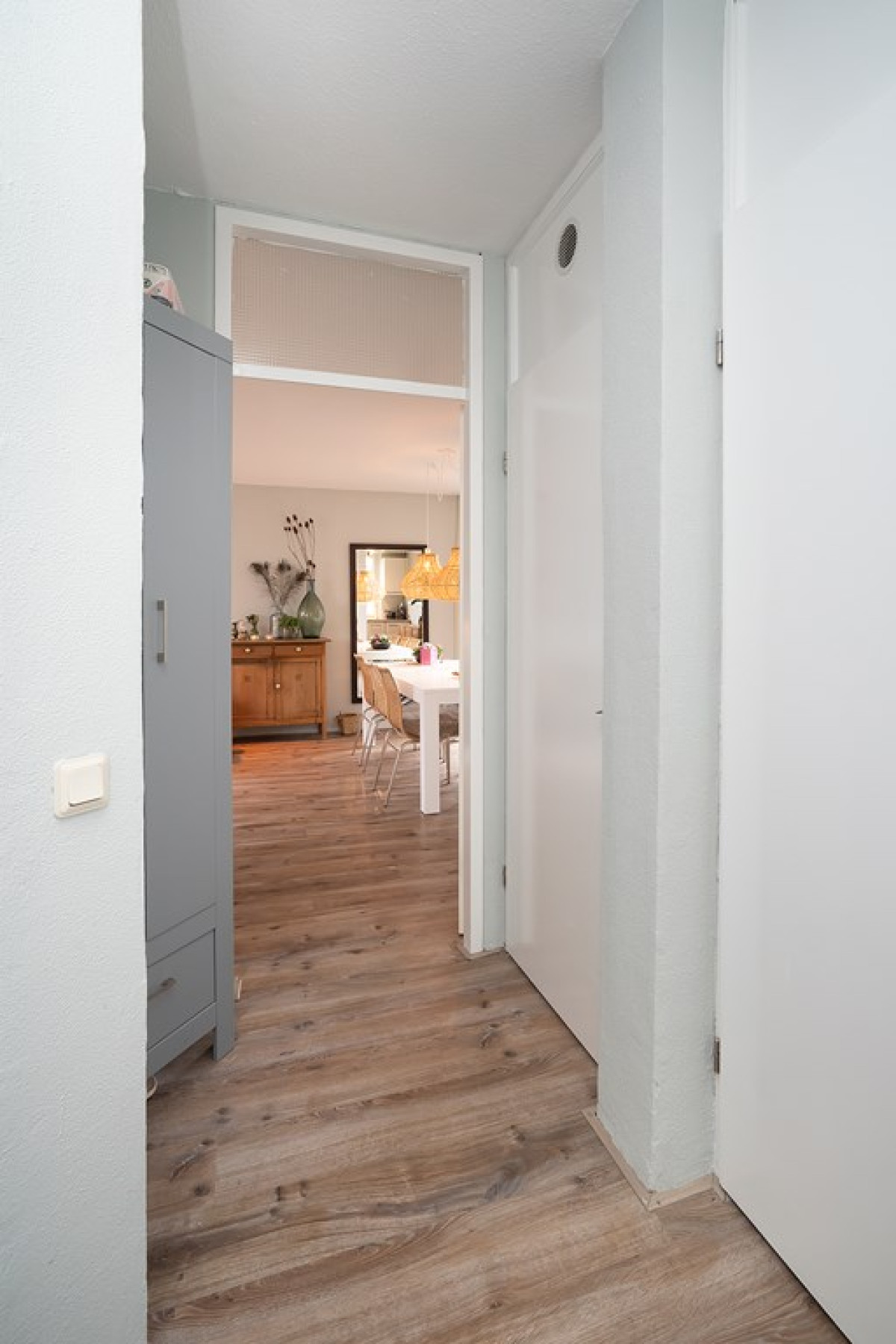 De woning biedt vanaf de straatzijde toegang tot een uitnodigende hal. Deze hal fungeert als je startpunt en vanuit hier bereik je gemakkelijk de eerste verdieping.