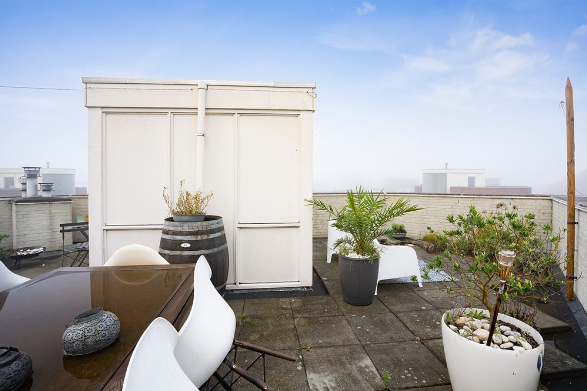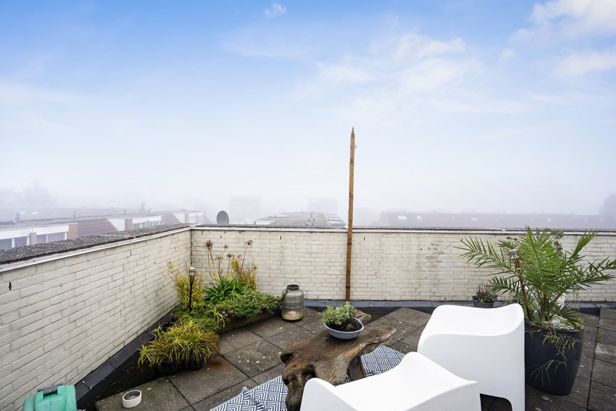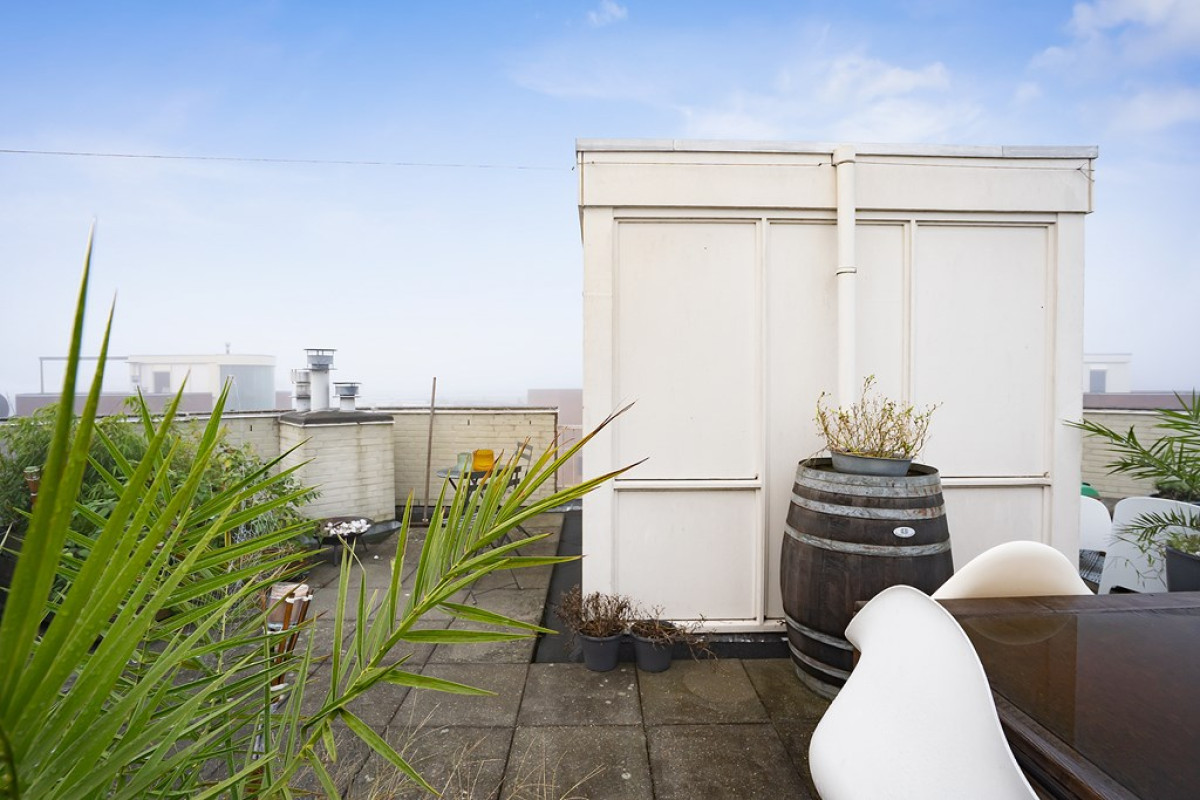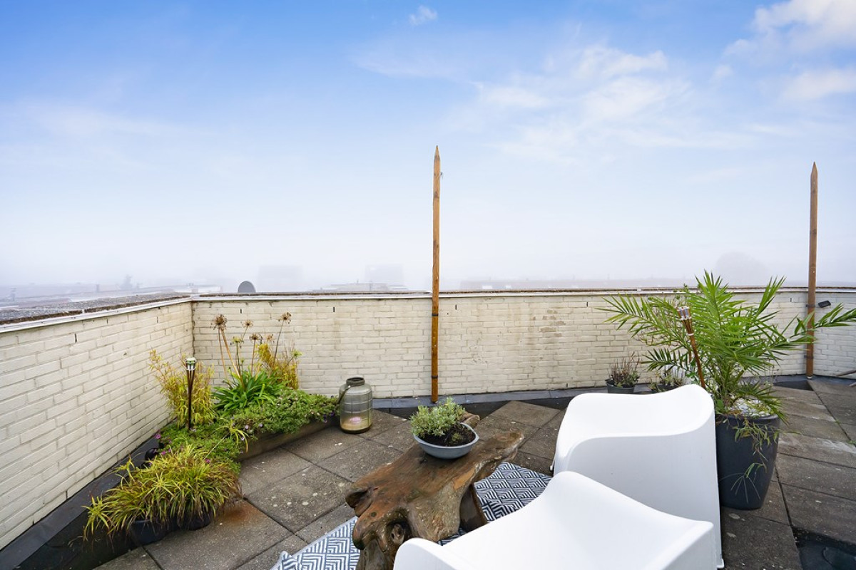 Het royale dakterras van 50m2 vormt de kroon op deze bijzondere maisonnettewoning. Dit buitenparadijs is de ideale plek voor een scala aan activiteiten. Of je nu een zonaanbidder bent die wil genieten van de warme stralen, een tuinier met groene vingers die zijn eigen stukje natuur wil creëren, of iemand die graag in goed gezelschap is en barbecues of borrels organiseert; hier kan het allemaal. Het terras biedt meer dan genoeg ruimte voor een ruime eettafel en lounge set, waardoor je zowel overdag als 's avonds de perfecte setting hebt voor ontspanning en vermaak.