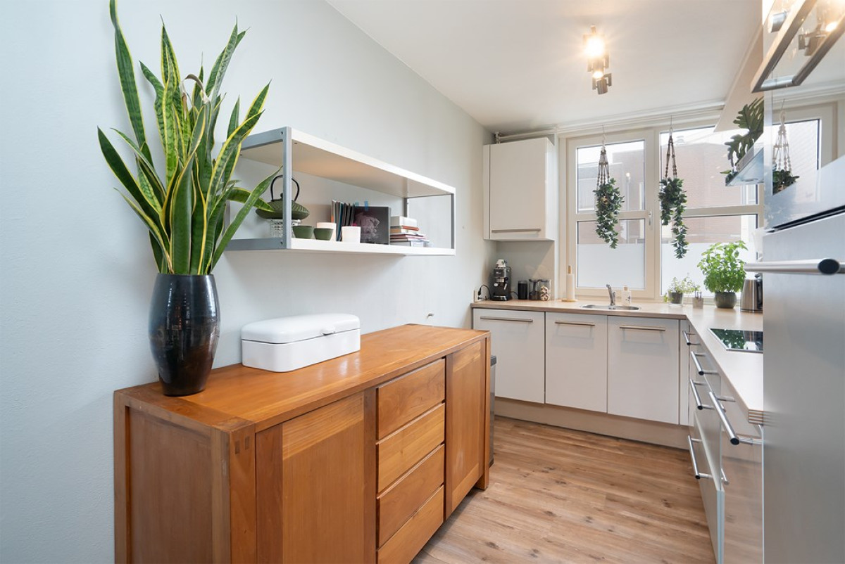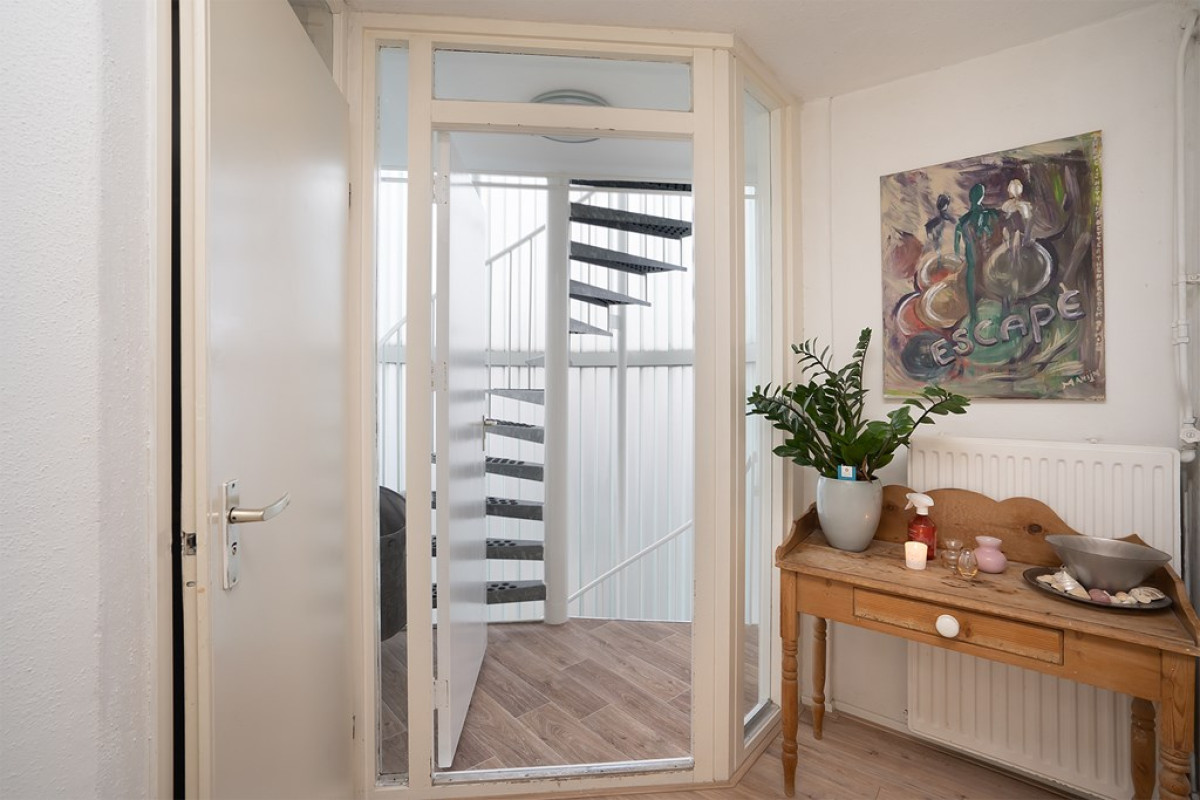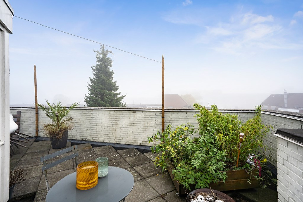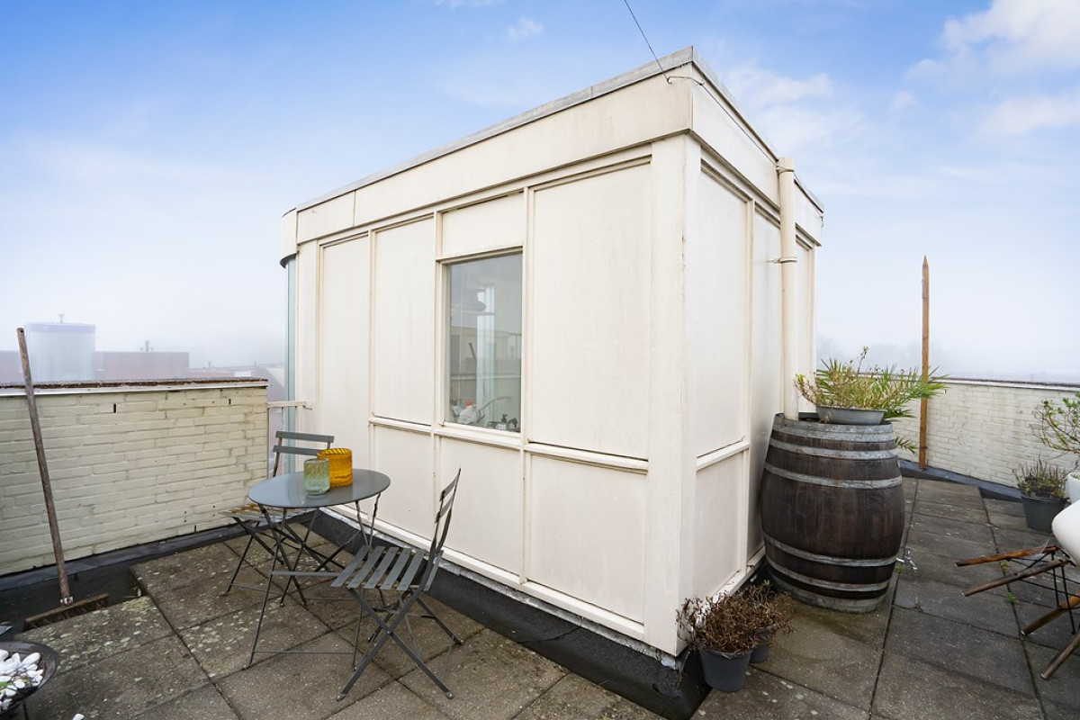Het royale dakterras van 50m2 vormt de kroon op deze bijzondere maisonnettewoning. Dit buitenparadijs is de ideale plek voor een scala aan activiteiten. Of je nu een zonaanbidder bent die wil genieten van de warme stralen, een tuinier met groene vingers die zijn eigen stukje natuur wil creëren, of iemand die graag in goed gezelschap is en barbecues of borrels organiseert; hier kan het allemaal. Het terras biedt meer dan genoeg ruimte voor een ruime eettafel en lounge set, waardoor je zowel overdag als 's avonds de perfecte setting hebt voor ontspanning en vermaak.
