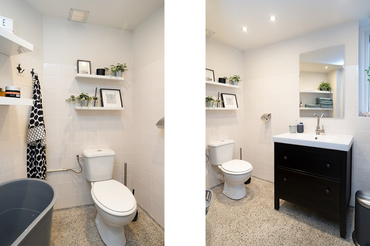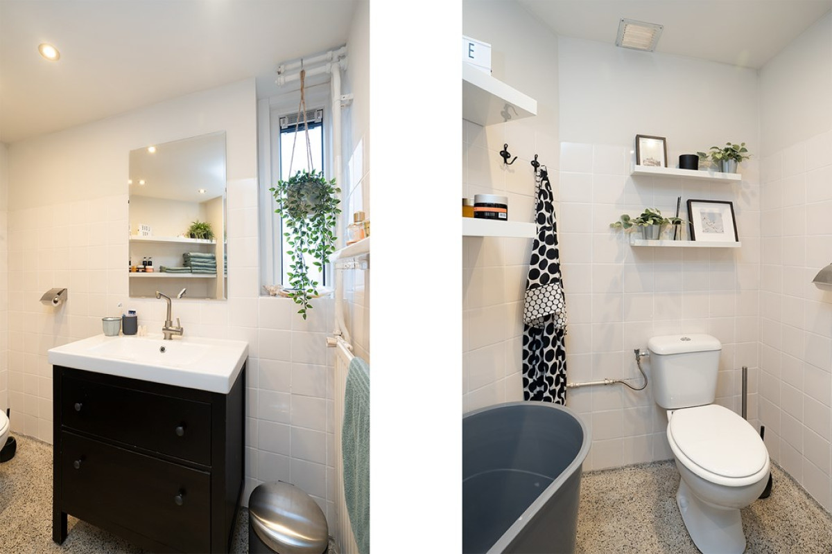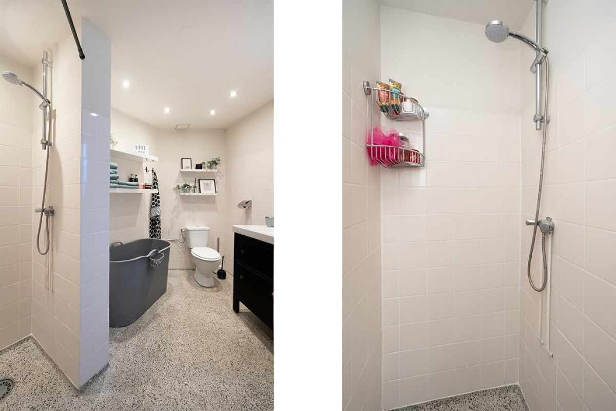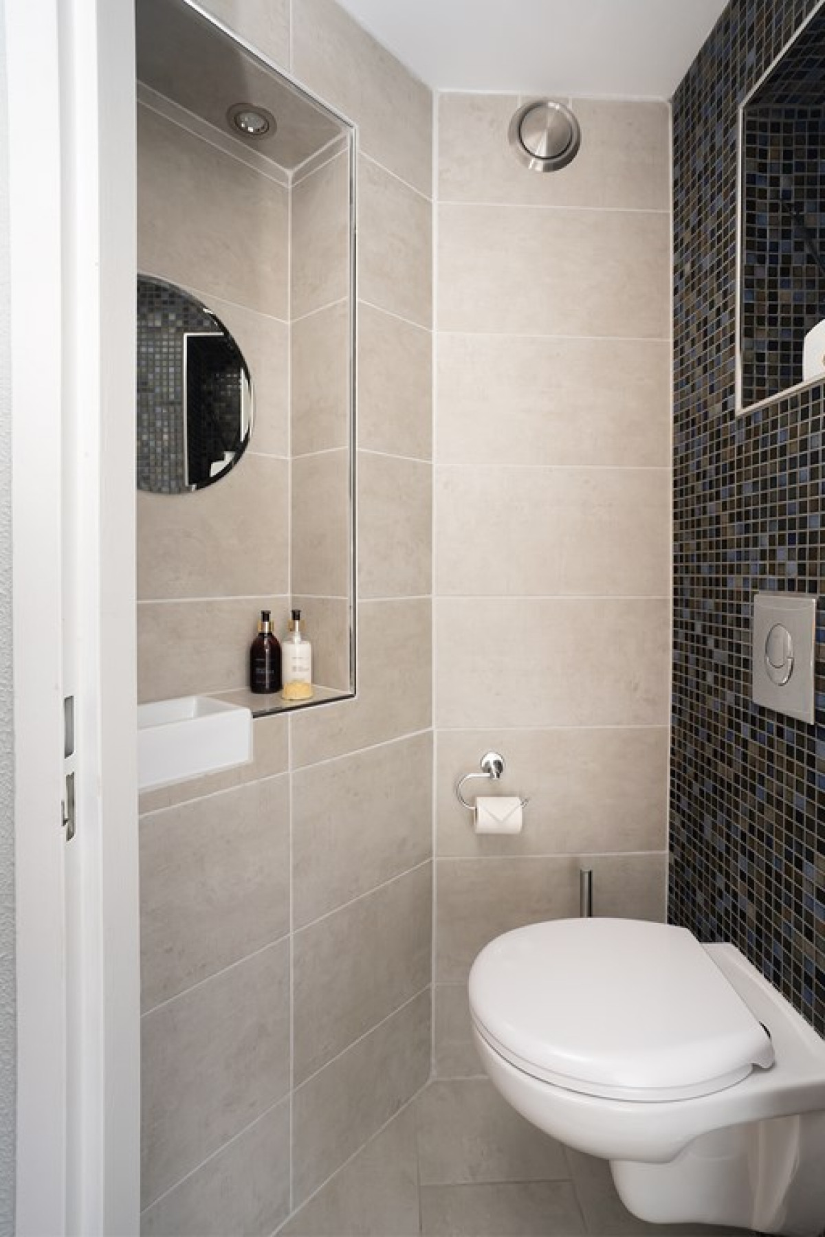 Op de bovenste verdieping bevinden zich de drie slaapkamers en een verzorgde badkamer. Elke slaapkamer biedt voldoende ruimte en de mogelijkheid om deze naar eigen smaak in te richten. De badkamer, uitgerust met een lichte vloer en crèmekleurige wandtegels, beschikt over een vast toilet, een wastafelmeubel en een douchecabine.