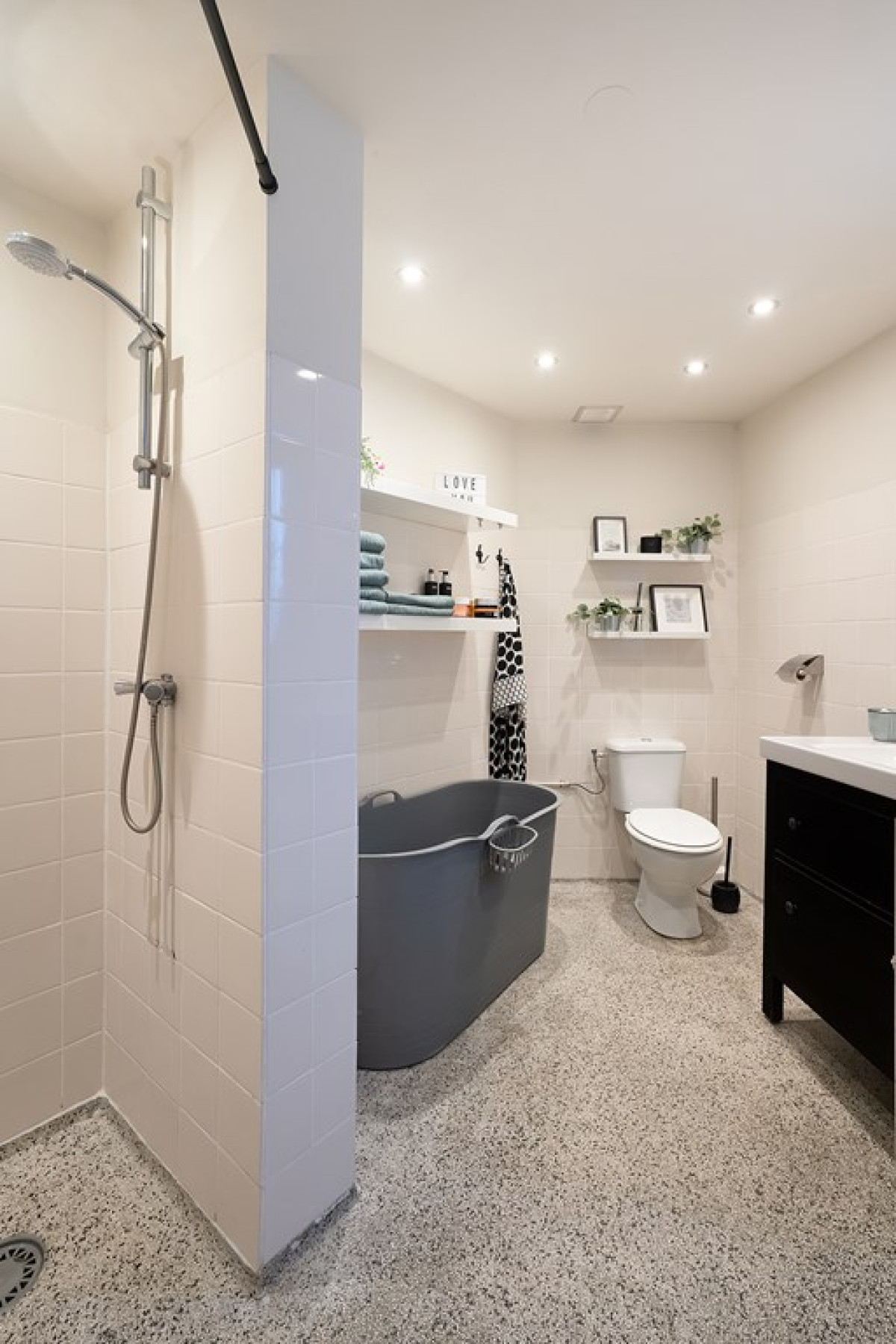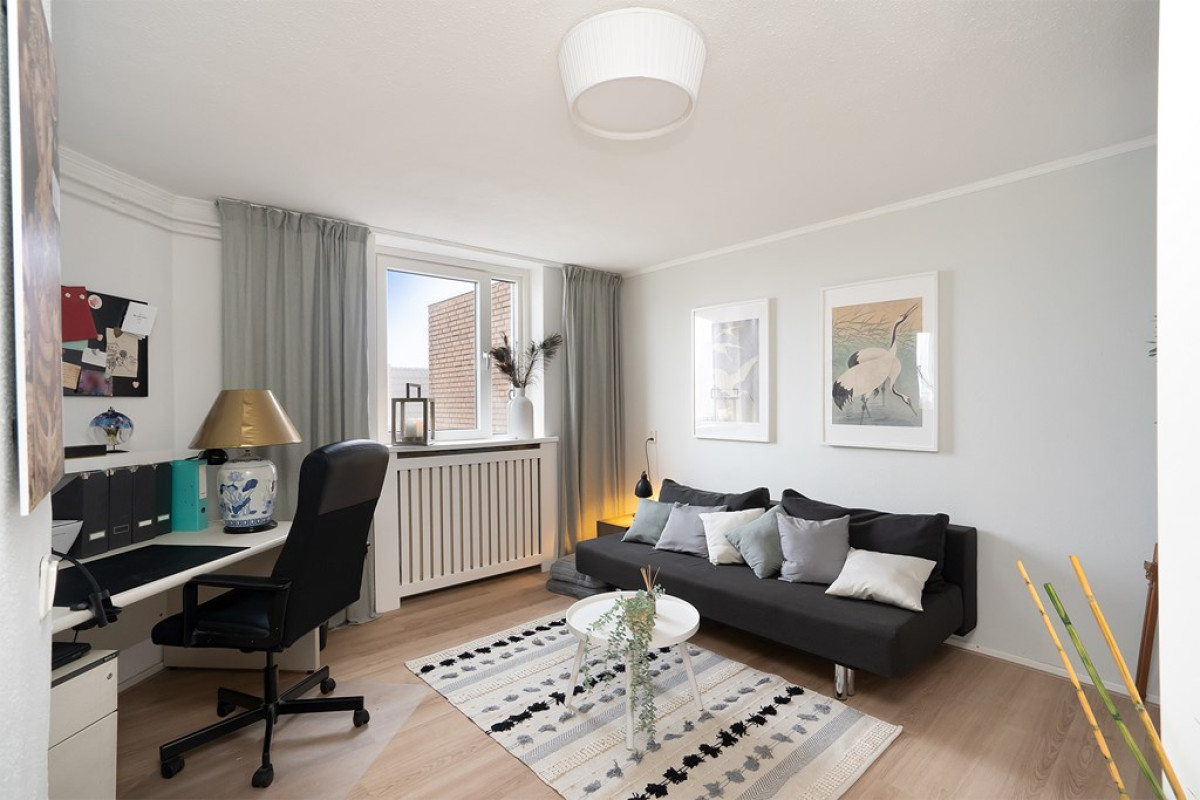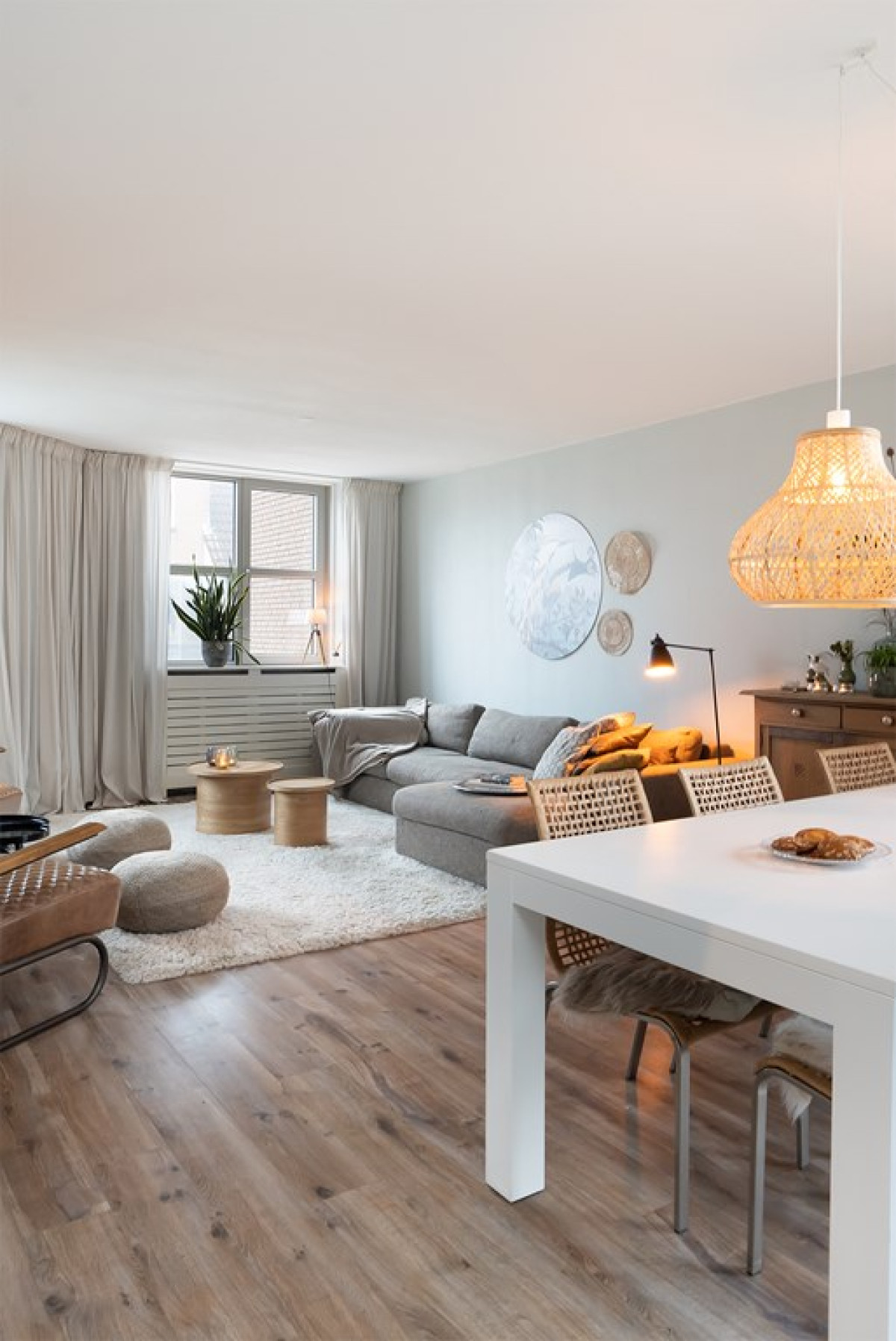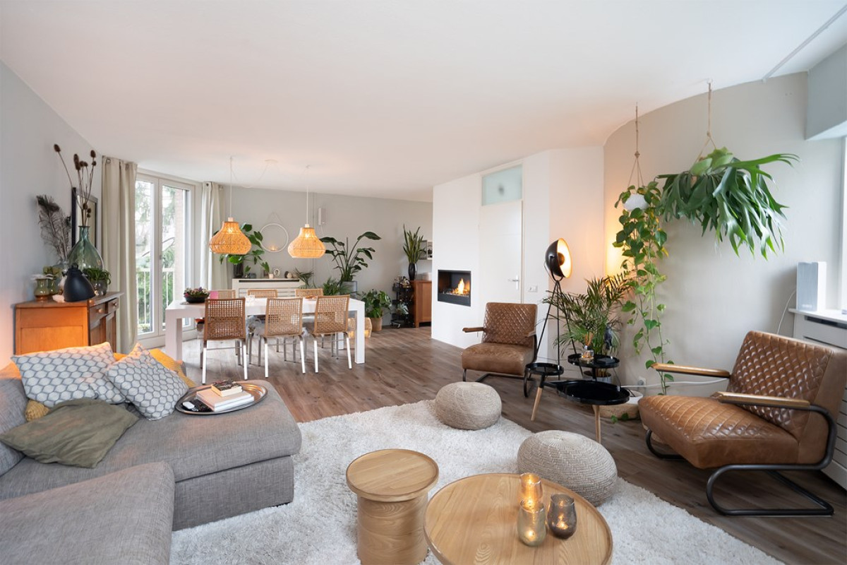 Eenmaal boven ontdek je meteen de charme van de uniek gevormde woonkamer, compleet met een moderne haard. Dankzij de vele ramen geniet je hier van een zee aan natuurlijk licht, ideaal voor die gezellige filmavonden of het ontvangen van gasten. Vanuit deze ruimte heb je tevens toegang tot een knus balkon en een open keuken.