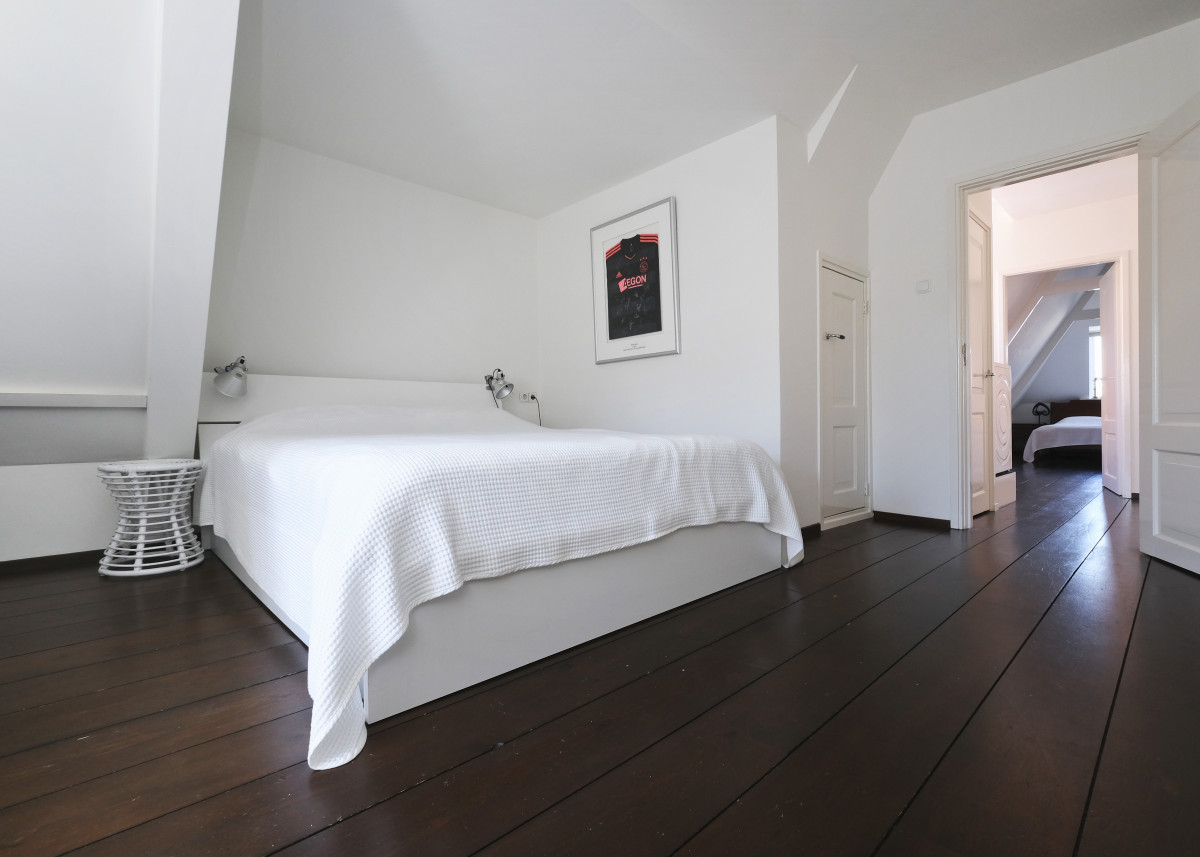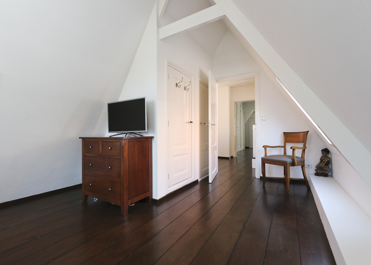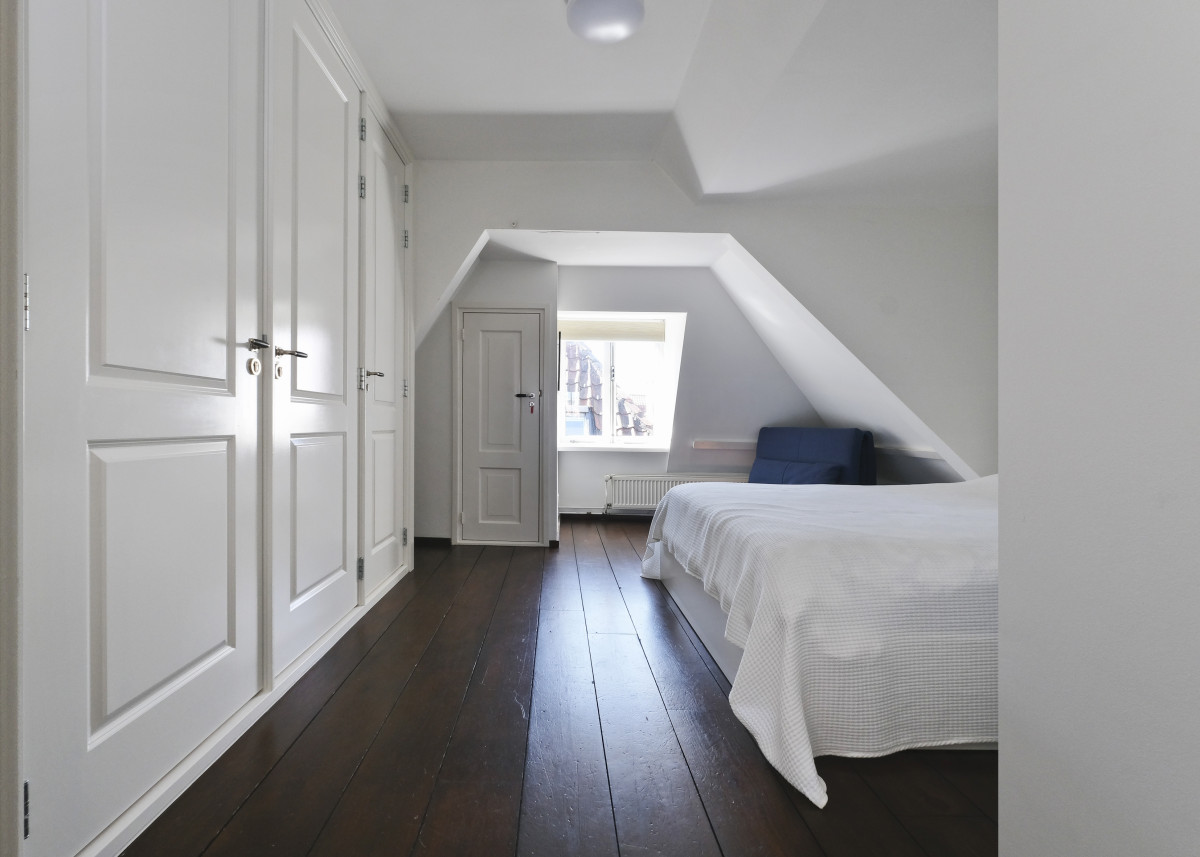De open trap in de woonkamer brengt u naar de verdieping met een tweetal slaapkamers en een tweede toilet. Beide slaapkamers zijn voorzien van 1 of meerdere vaste kasten. Lichtinval wordt gerealiseerd door klassieke dakkapellen en dakramen. Vanaf de overloop (met de witgoed aansluiting) loopt u via een loopdeur naar het zonovergoten dakterras.