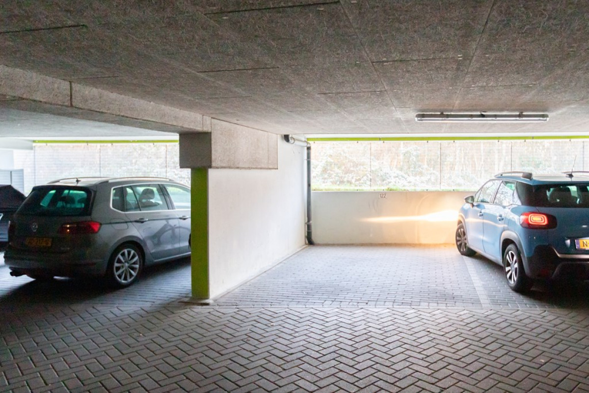 In het souterrain is de parkeergarage te vinden met voor iedere woning een ruime eigen parkeerplaats. De toegangsdeur tot de garage is op afstand te bedienen. Ook hoort er bij iedere woning een eigen berging.