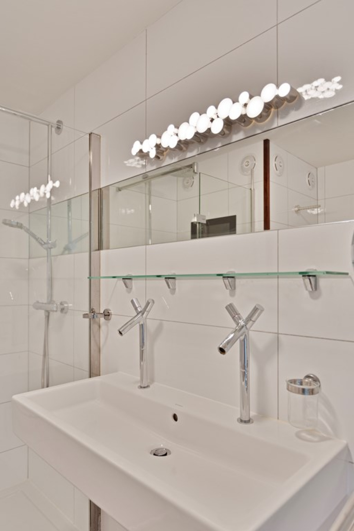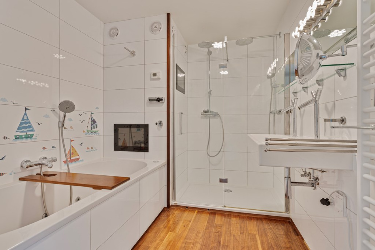 - Ruime badkamer met ligbad en dubbele inloop douch.