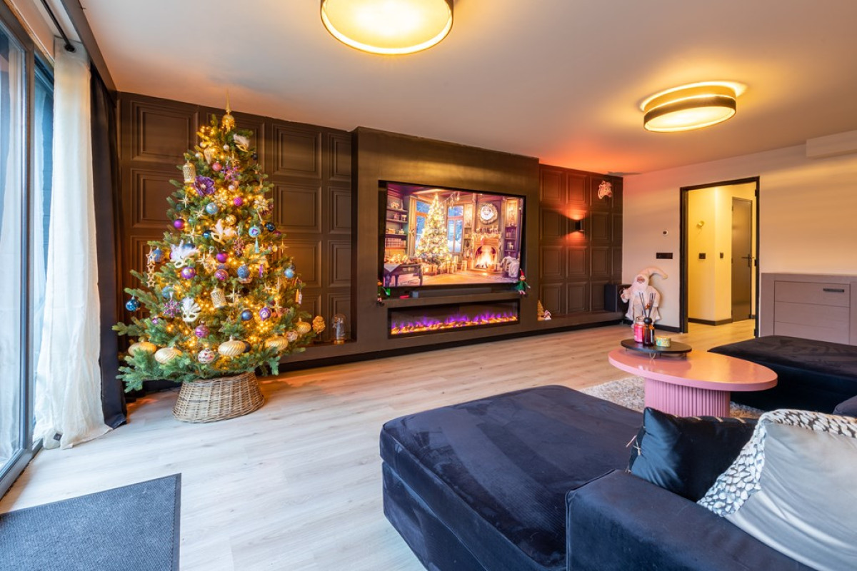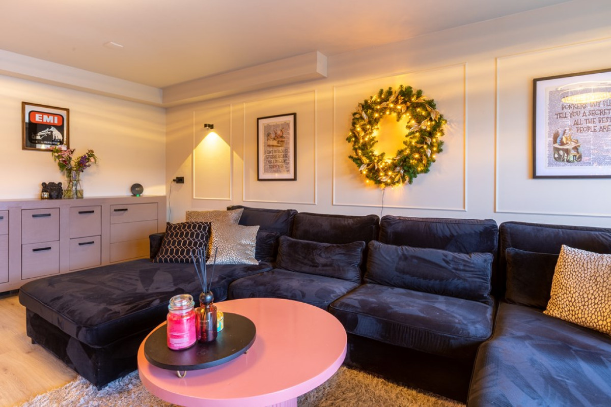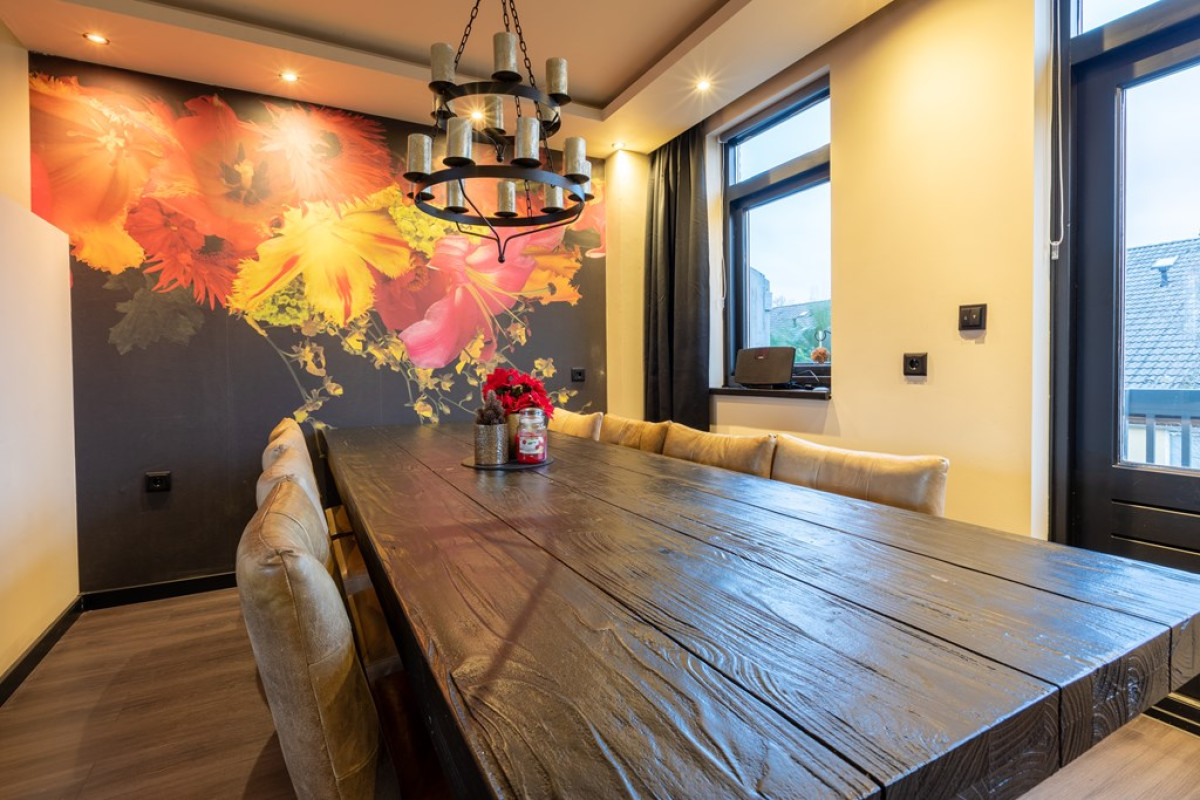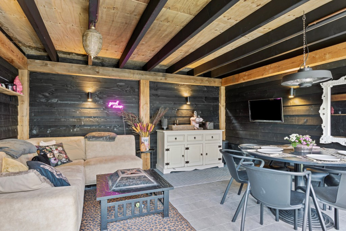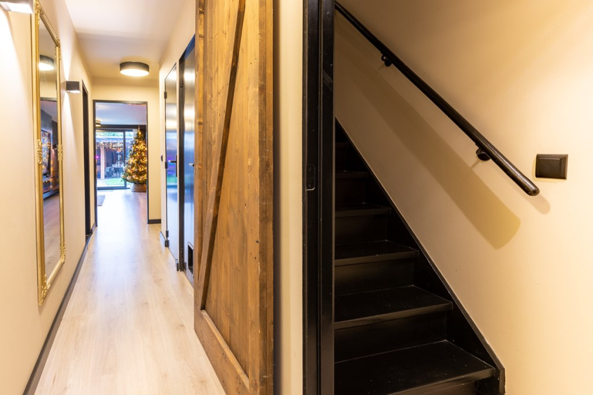 Vanuit de hal stap je ook binnen in de ruime uitgebouwde woonkamer (2018) met een schuifpui over de volledige breedte van de woonkamer en uitzicht op de sfeervolle achtertuin.