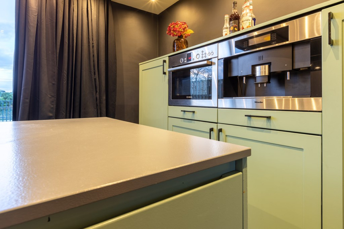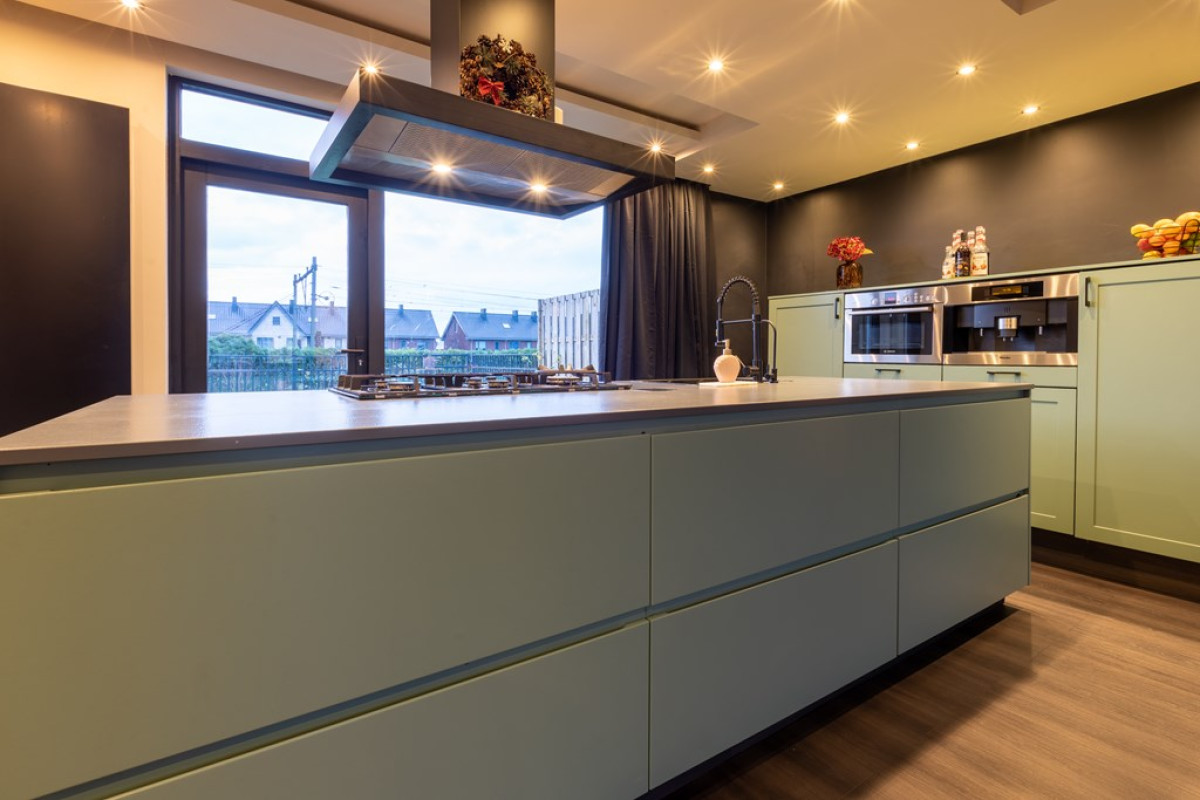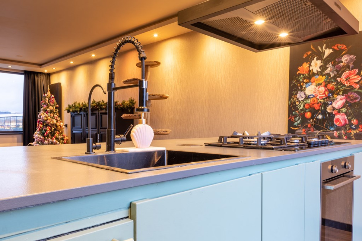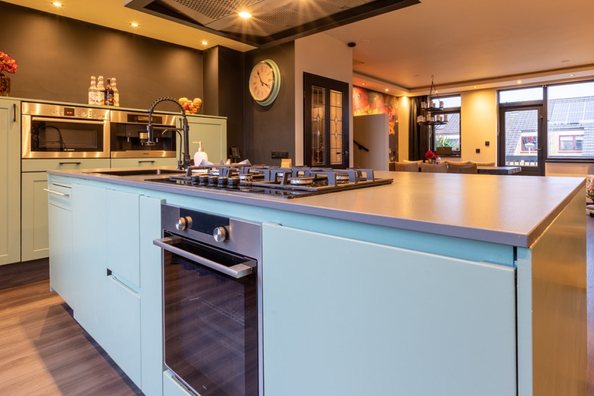 Als je de eerste verdieping binnen stapt word je compleet verrast met nog een prachtige living. Je vindt hier ook de ruim opgezette keuken (2023). Deze keuken is uitgerust met een kookeiland en diverse inbouwapparatuur zoals een vaatwasser, oven, magnetron, koffiezetapparaat en koelkast. Hier is meer dan genoeg ruimte voor een grote eettafel en een comfortabel zitgedeelte. Zie jij jezelf hier al uitgebreid tafelen met vrienden/familie? Vanuit de keuken heb je toegang tot het royale dak, ook een perfecte plek om in de zomer van de zon te genieten en na te tafelen. Aan de voorzijde van de woning bevindt zich nog een balkon, zodat je altijd kunt kiezen tussen zon of schaduw.