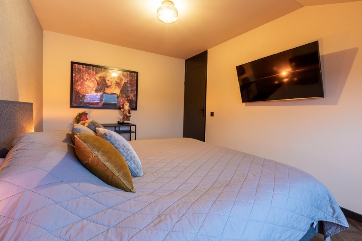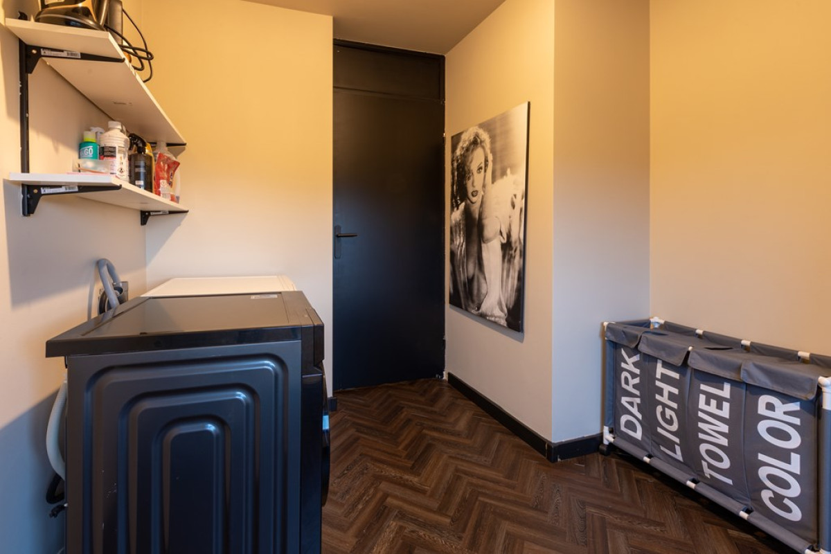 De kleinste slaapkamer is momenteel ingericht als was en werkruimte, maar kan natuurlijk ook als slaapkamer dienen aangezien op de begane grond ook een aansluiting voor de wasmachine te vinden is.