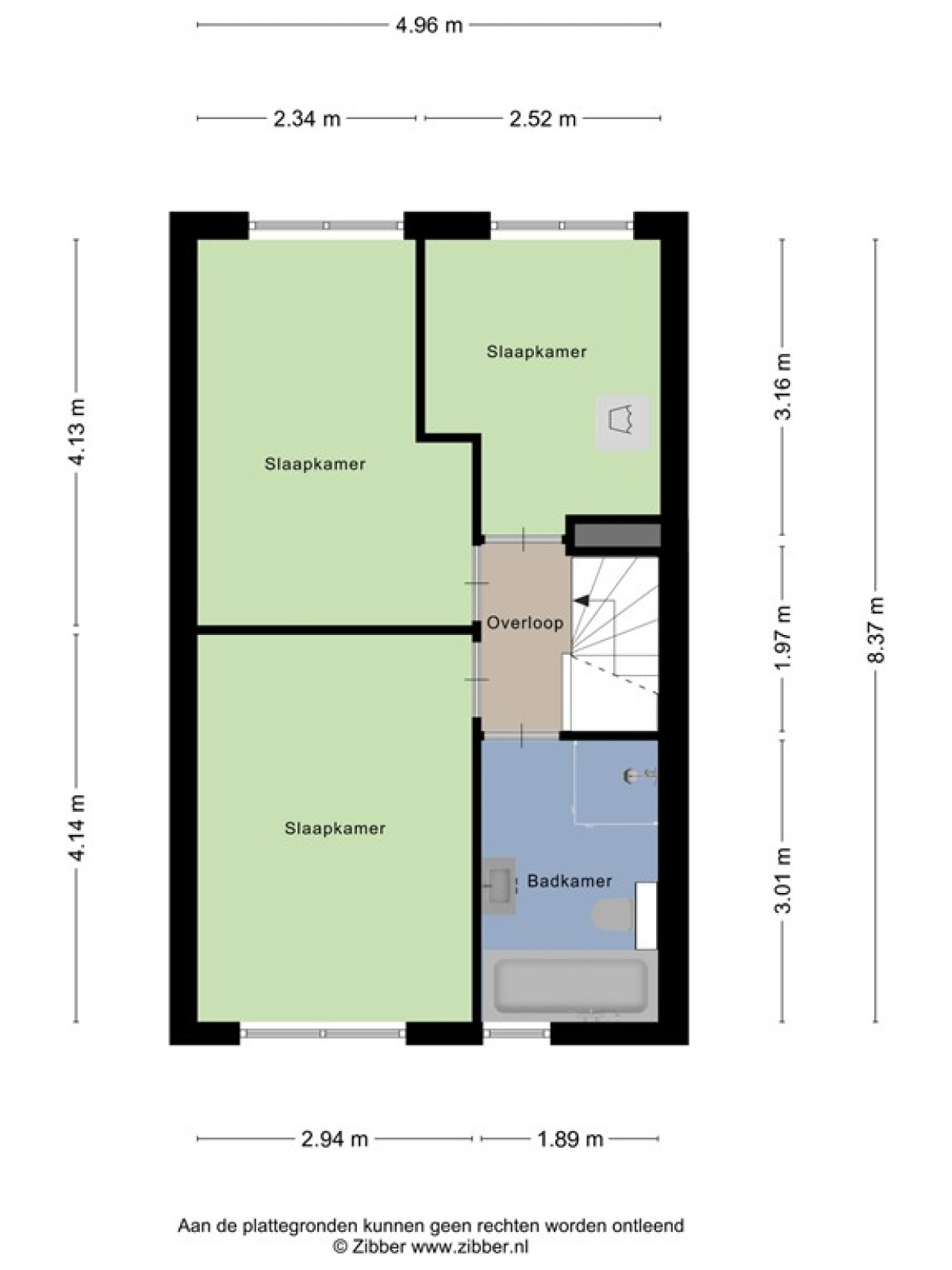 De tweede verdieping biedt drie slaapkamers en een badkamer.