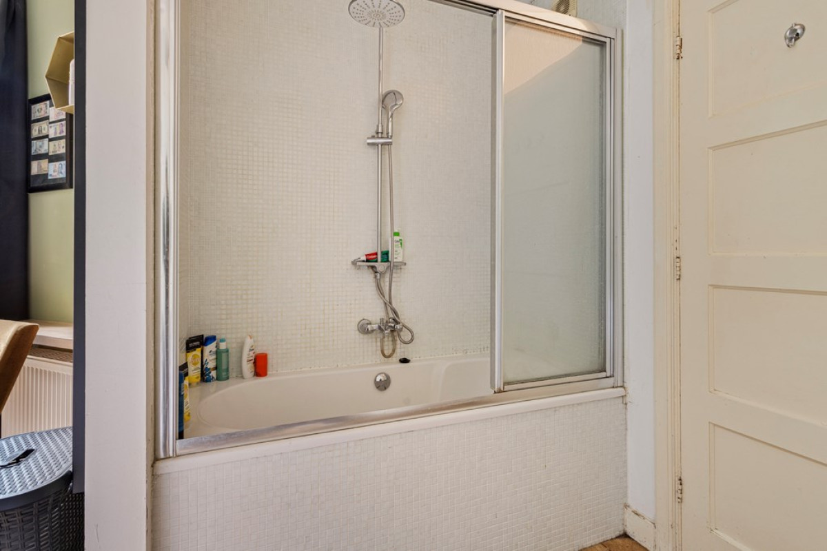 De ruime slaapkamer is gelegen aan de achterzijde. De badkamer ( in de slaapkamer) is voorzien een bad en douche, apart toilet met wastafelmeubel. Tevens nog een aparte berging kast.