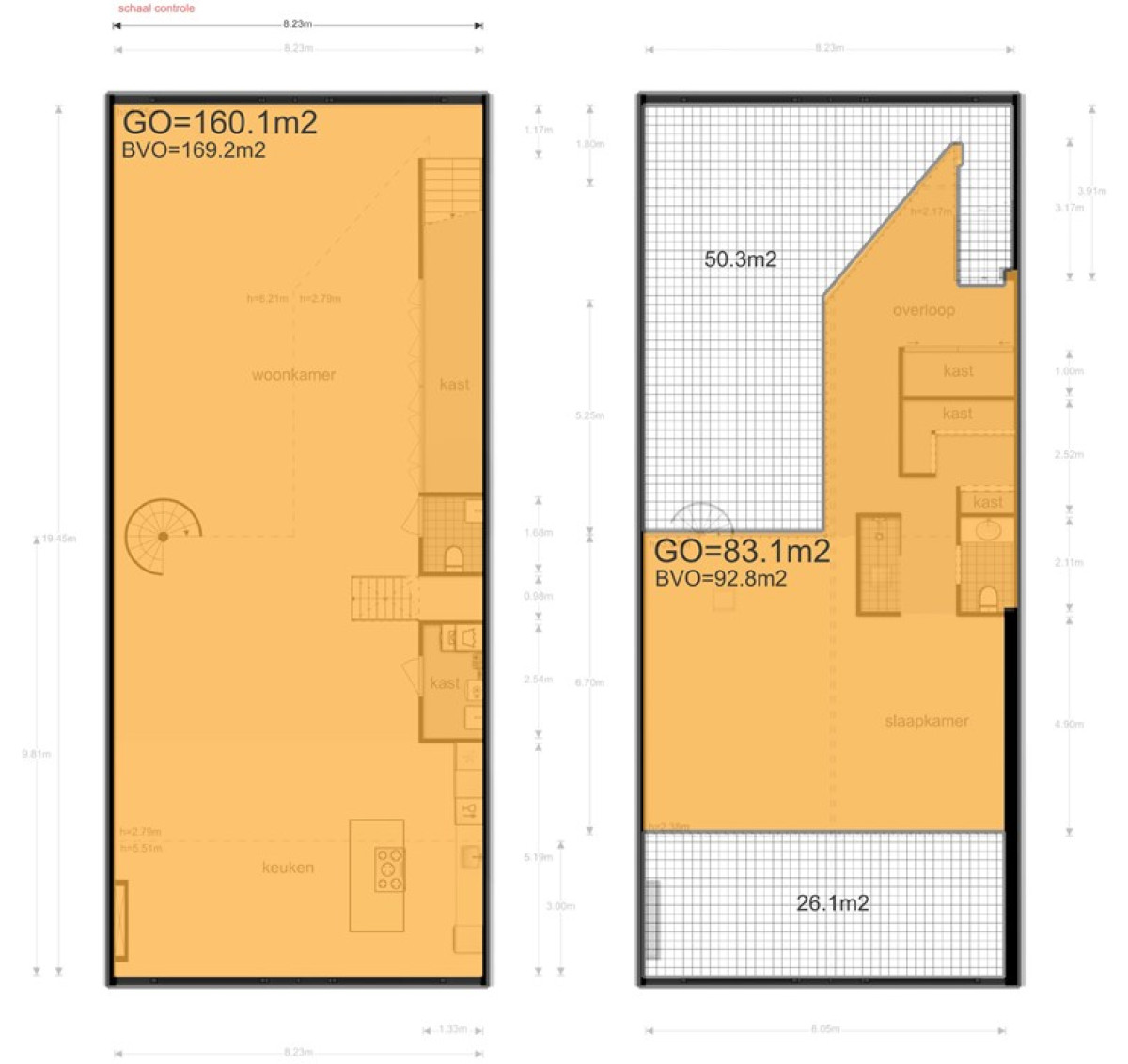 De gepubliceerde oppervlakte en metrages van deze woning zijn door een onafhankelijke partij samengesteld in de vorm van een meetrapport, conform de NEN 2580 normering voor oppervlakte metingen.