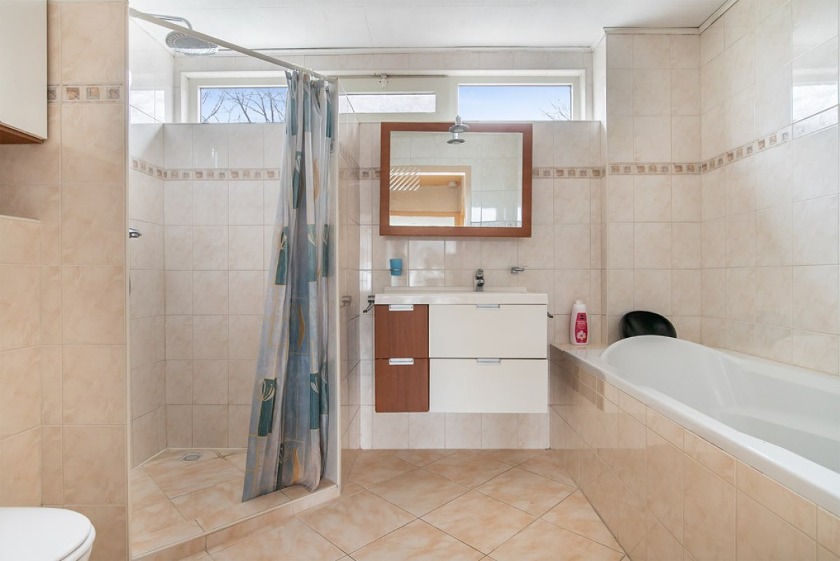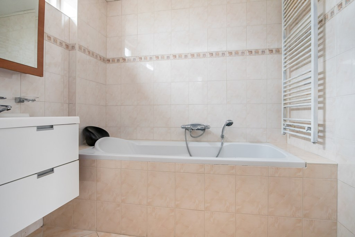 In de ruime badkamer vind je een ligbad, douche, toilet en wastafelmeubel. Zie je jezelf al genieten van een lekker warm bad? Als je het bad of de douche uitstapt hoef je geen koude voeten te krijgen dankzij de vloerverwarming.