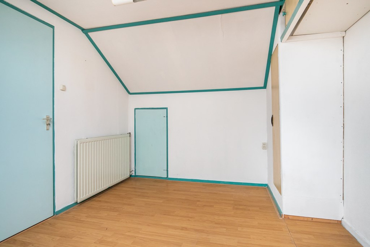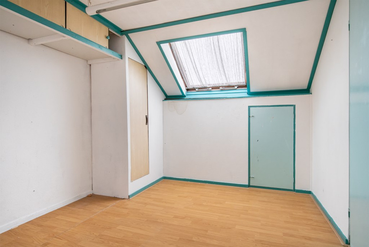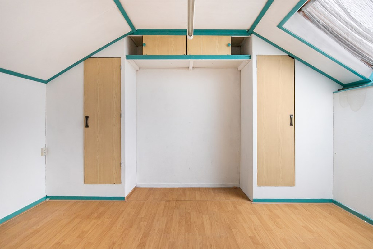 De zolder bestaat uit een vierde slaapkamer, met bergruimte achter de knieschotten en een voorzolder.
