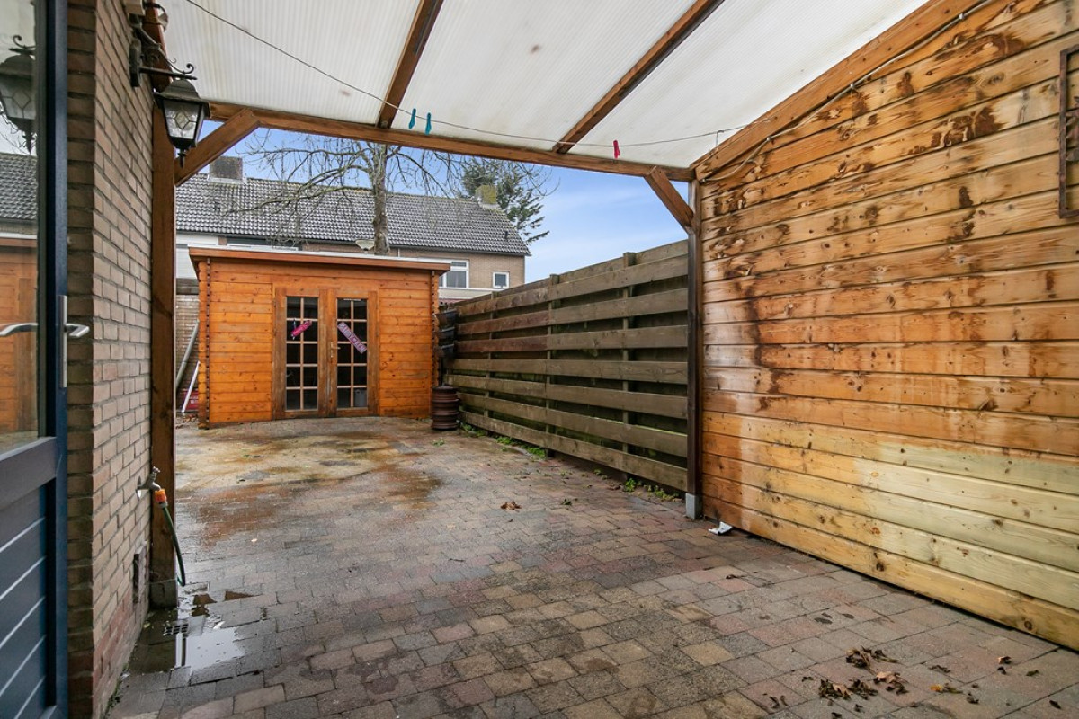 Fiets-en/of motorliefhebbers zullen geen gebrek aan ruimte hebben. Naast de stenen berging, is er ook een houten tuinhuis aanwezig.