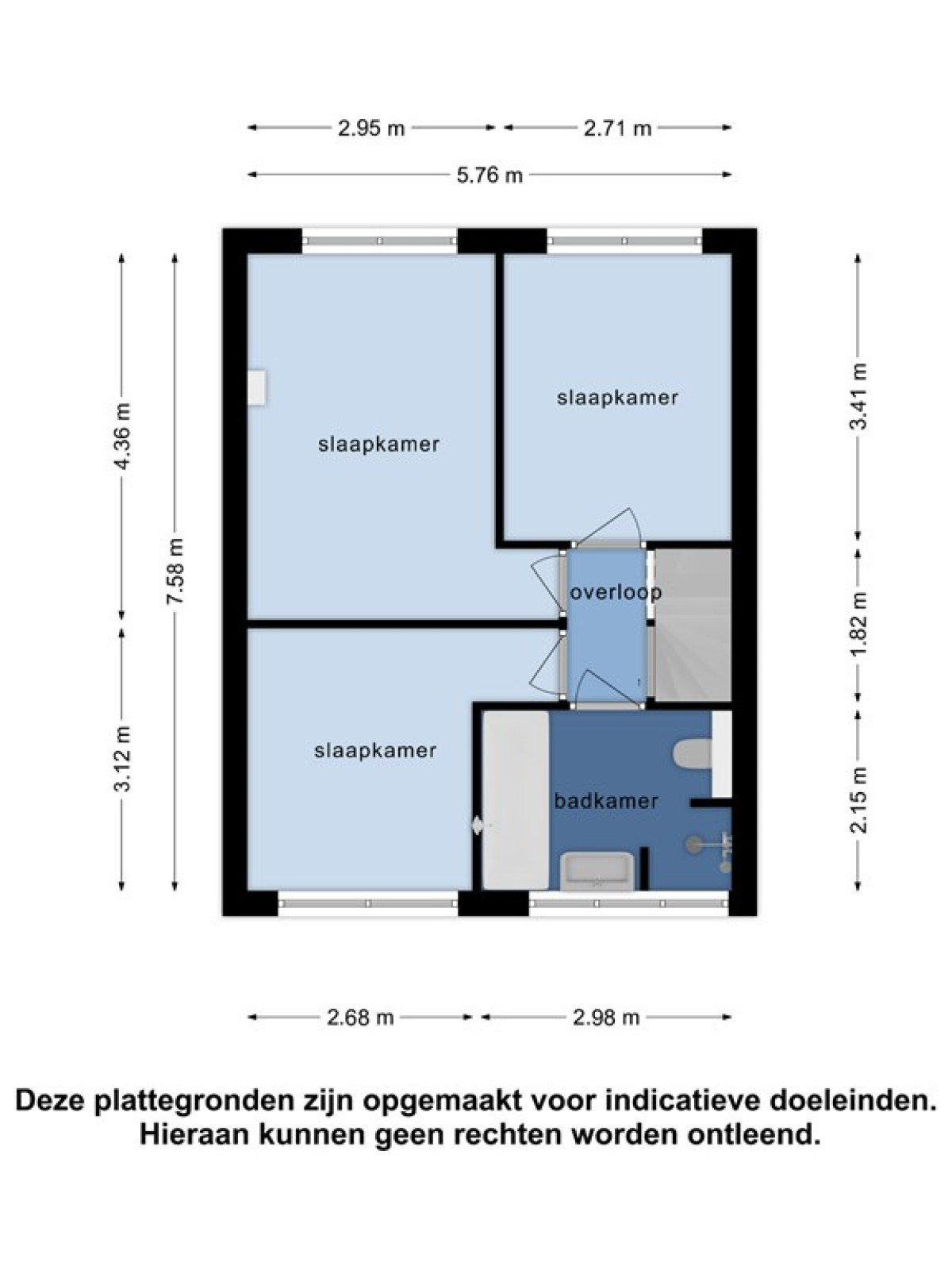 Via de overloop met trapopgang naar de tweede verdieping zijn de 3 slaapkamers en de badkamer bereikbaar.