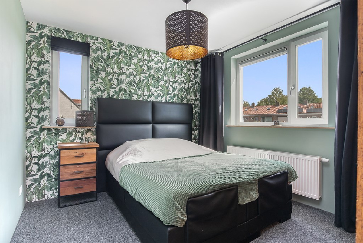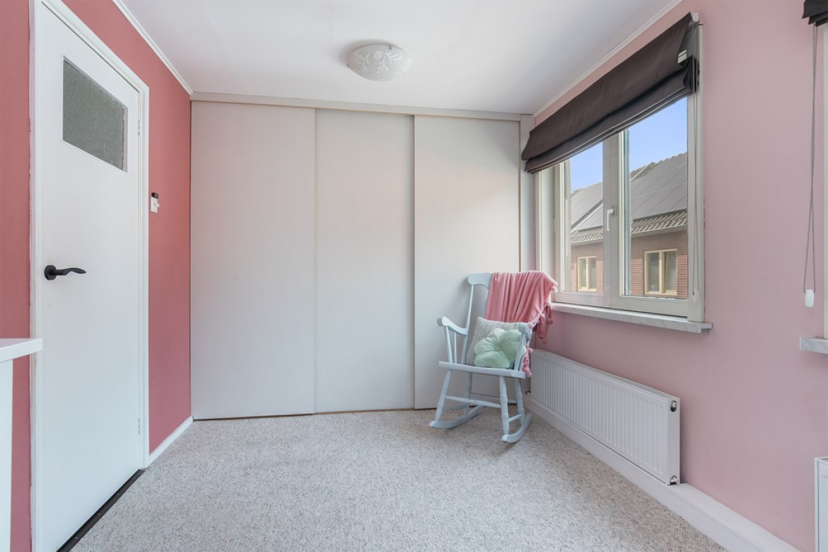 Met deze opbouw is een extra slaapkamer met inloopkast gecreëerd. Met ruim 14m² is dit een bijzonder ruime slaapkamer te noemen. Vanuit het raam heb je uitzicht op de achtertuin.