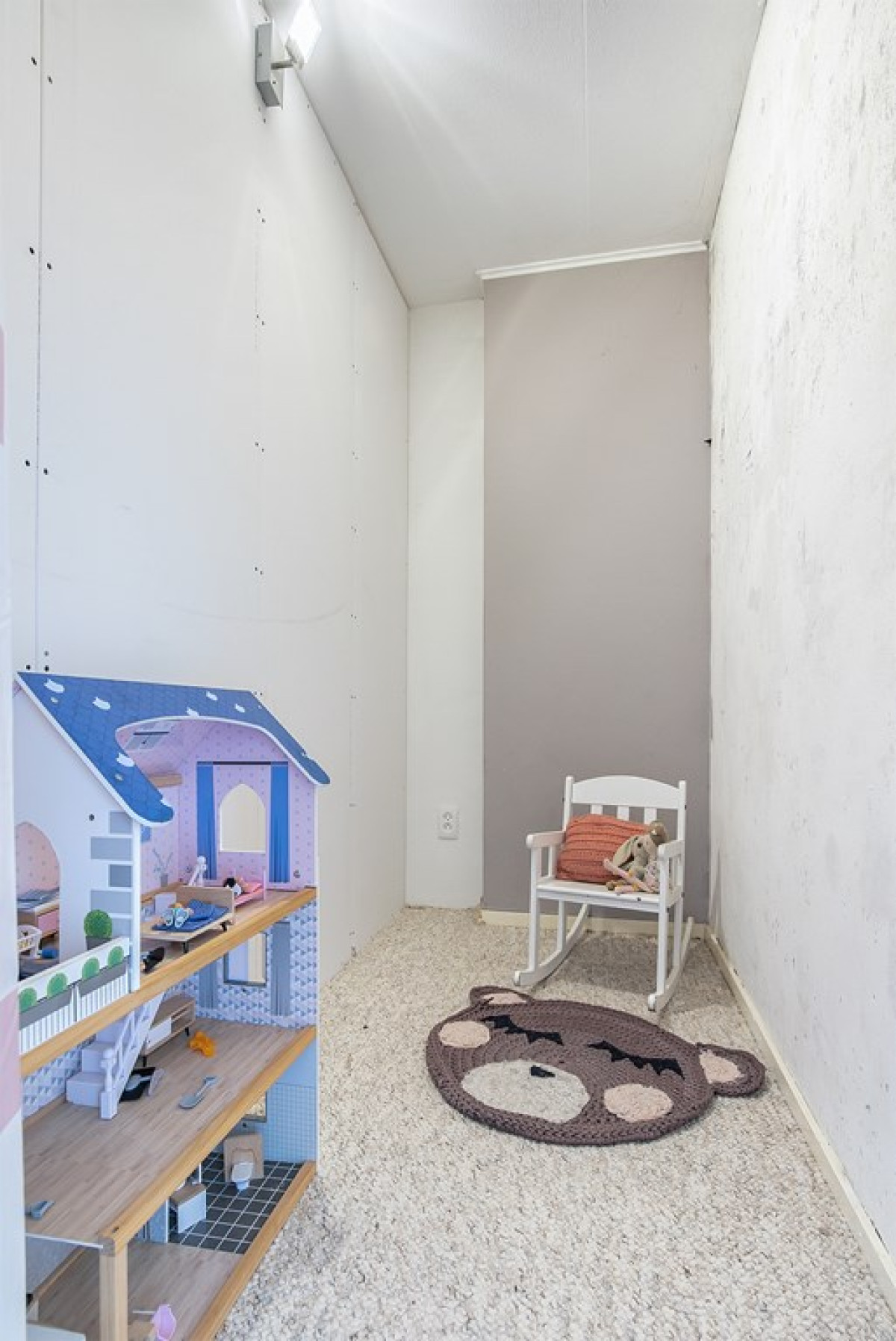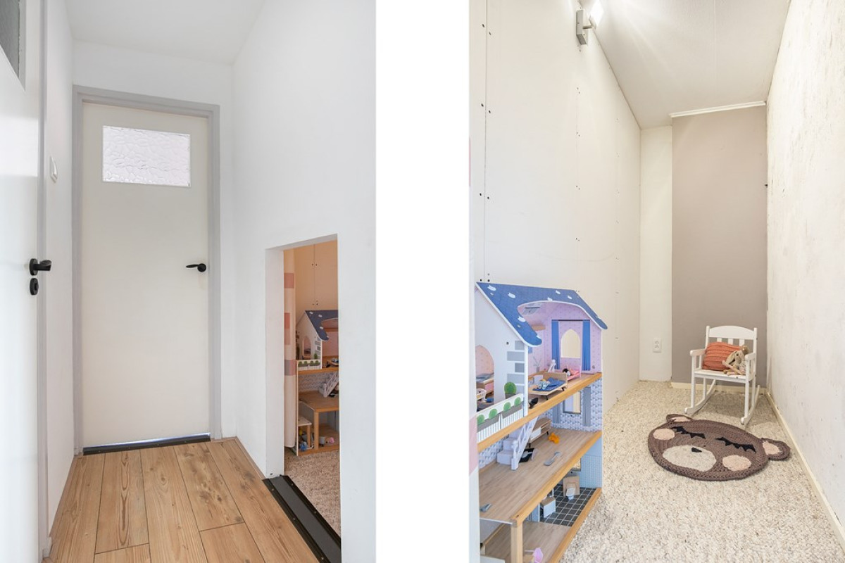 Deze ruimte van bijna 2,5m² is momenteel als speelruimte in gebruik, maar kan ook als berging gebruikt worden of bij een van de slaapkamers betrokken worden (evt. als inloopkast).