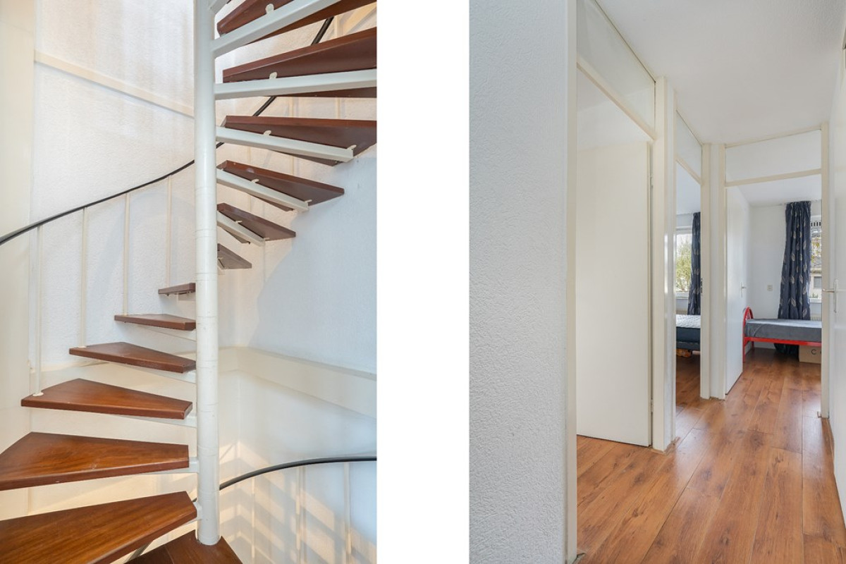 Via een elegante spiltrap bereik je de overloop op de eerste verdieping, die toegang biedt tot drie sfeervol ingerichte slaapkamers en een moderne badkamer. De badkamer is voorzien van alle essentiële faciliteiten, waardoor je een perfecte start van de dag ervaart.