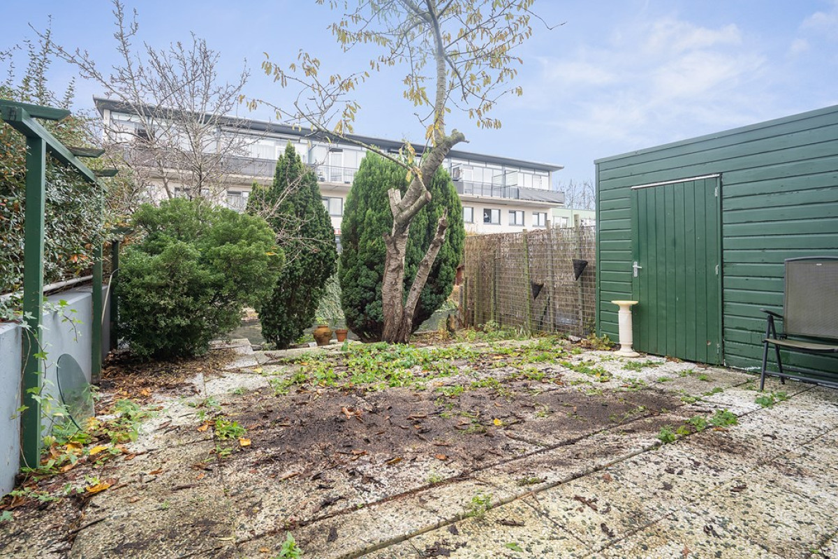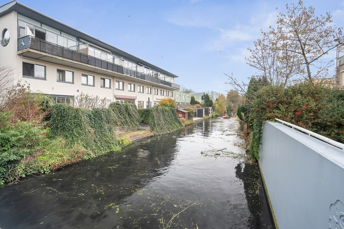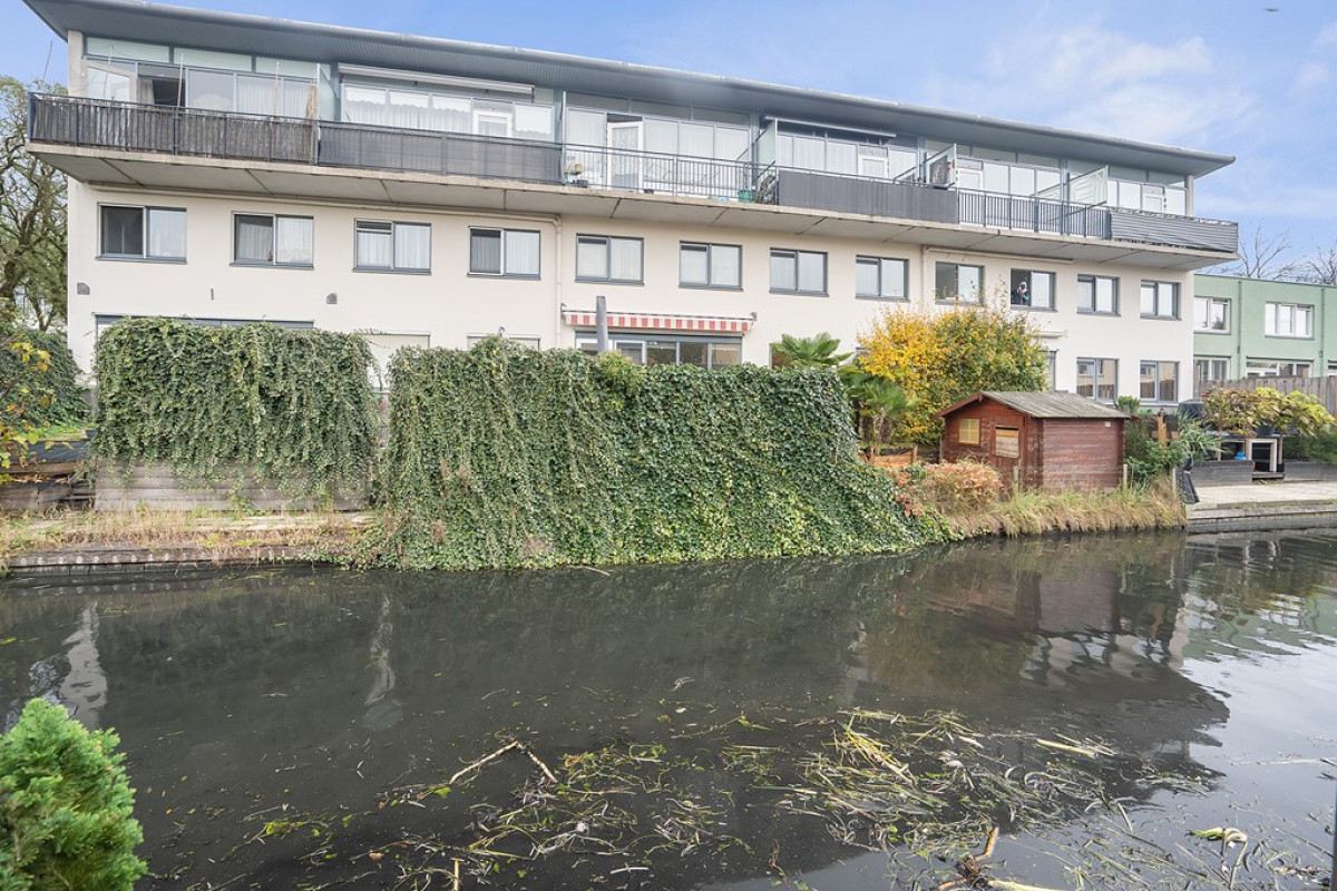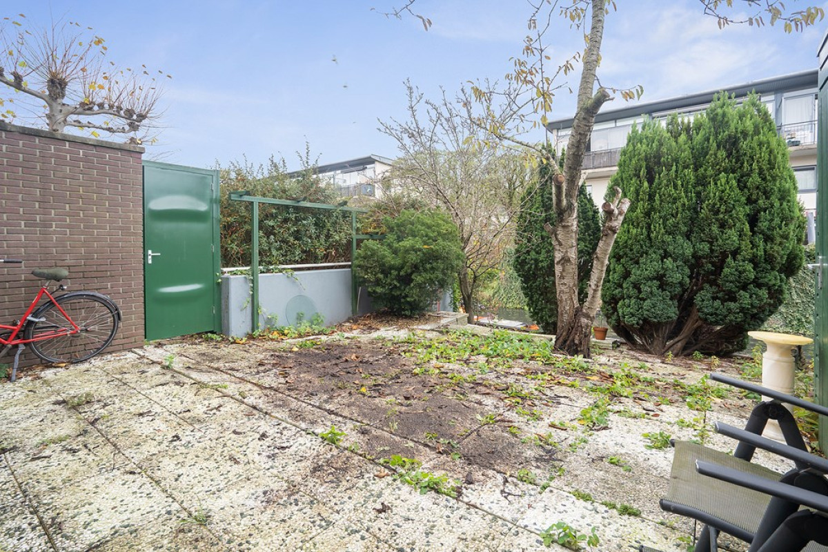 De goed onderhouden achtertuin, met directe ligging aan het water, is een ware oase van rust. Hier geniet je van zonnige dagen en rustige avonden, met voldoende ruimte voor kinderspel of een ontspannende barbecue. De houten berging biedt extra opbergruimte voor al je tuinspullen.