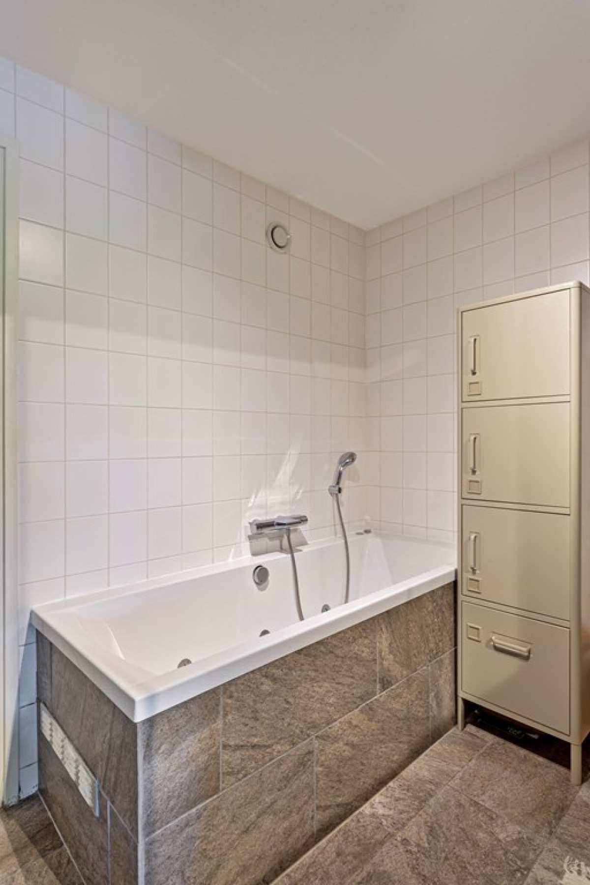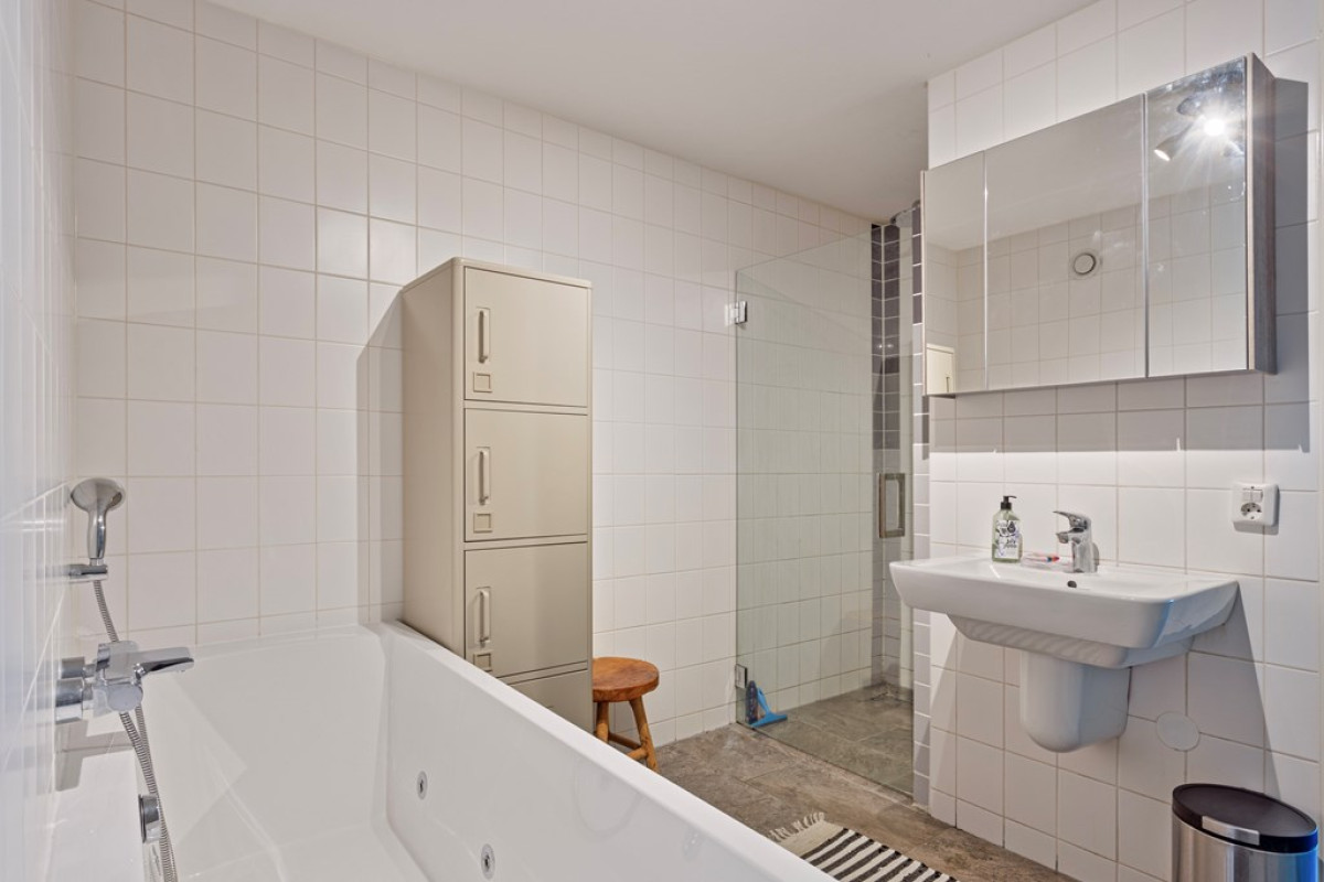 Vanuit de slaapkamer bereik je de ruime en moderne, volledig betegelde badkamer. Zie je jezelf al chillen in het bubbelbad? Naast een whirlpool ligbad, is er ook een inloopdouche en een wastafel. Zoals eerder genoemd is er vanuit de badkamer ook een deur naar de wasruimte.