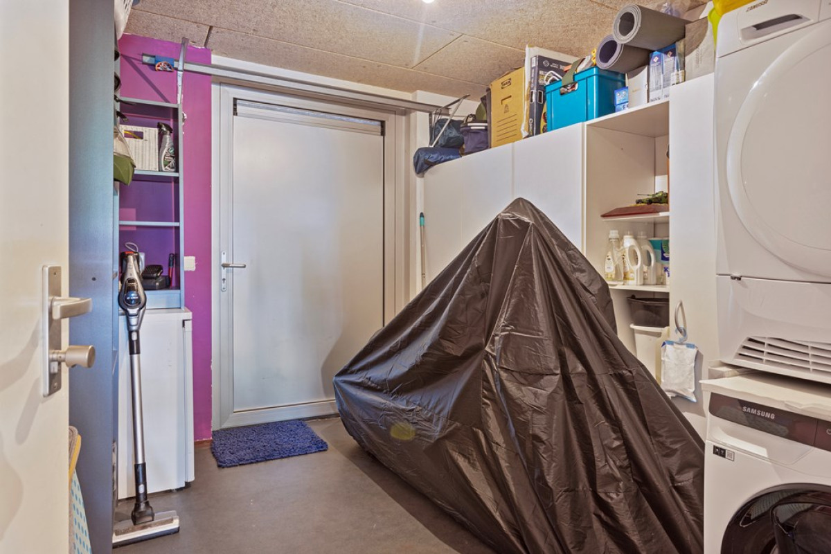 De berging is ruim waardoor hij naast bergruimte ook als wasruimte in gebruik is. Vanuit de berging is ook de badkamer te bereiken.
