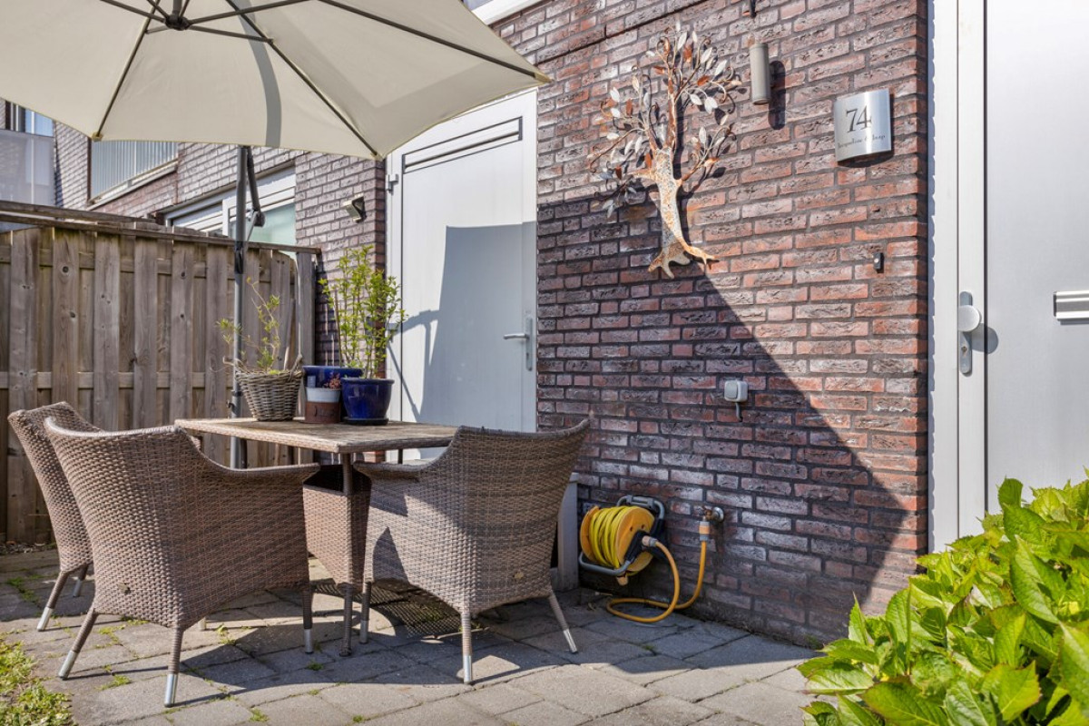 Je bereikt de woning via de ruime voortuin die plaats biedt voor 2 auto’s waarnaast nog voldoende ruimte overblijft voor een terras waar je lekker van het zonnetje kunt genieten. Mocht je meer privacy wensen dan zijn er mogelijkheden voor het creëren van een afscheiding.