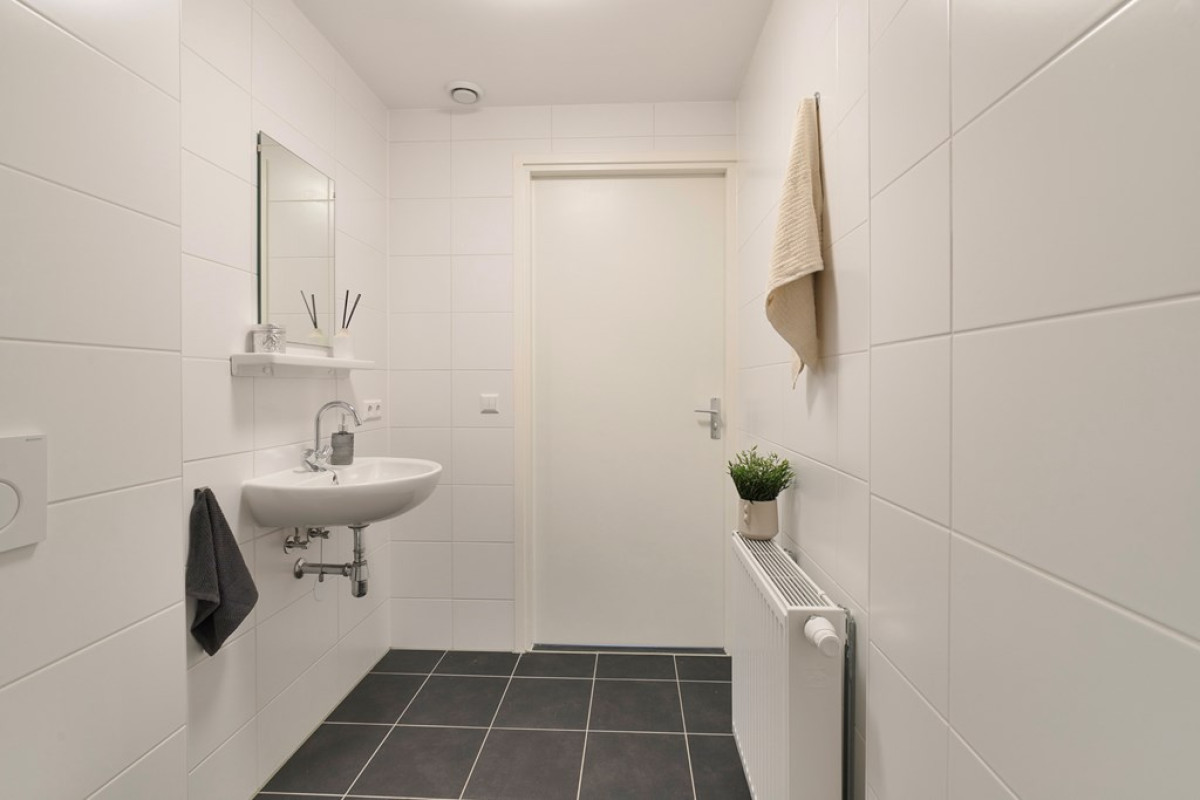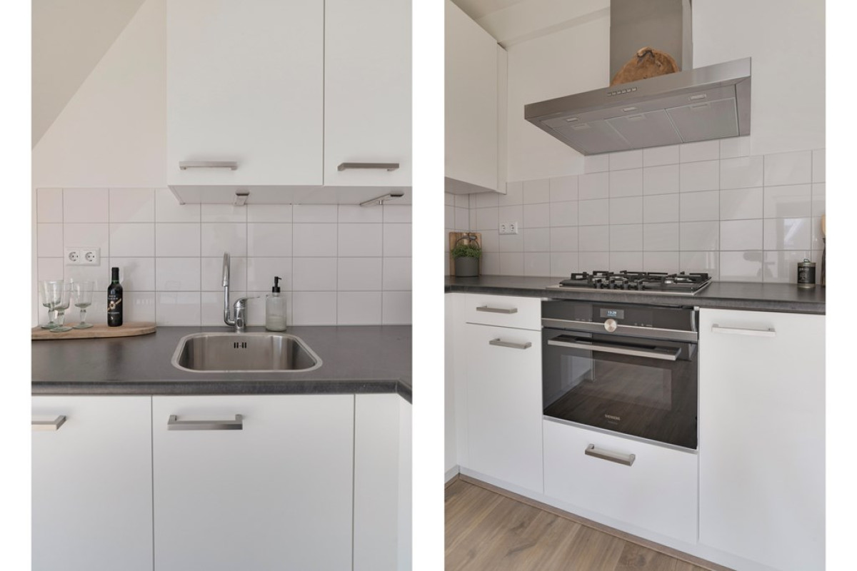 entree, hal, meterkast, wasruimte, lichte en modern ingerichte woonkamer met onder andere strakke wanden, moderne vloerafwerkingen en open keuken voorzien van hoogwaardige inbouwapparatuur. Via de keuken is het balkon bereikbaar waar u kunt genieten van het zonnetje en de buitenlucht. Vanuit de woonkamer een mooi uitzicht over de Schepenmakersdijk en de badkamer is modern afgewerkt en voorzien van onder andere een badmeubel, douche en closet. Via de hal is de ruime slaapkamer bereikbaar en het appartement is voorzien van een gemeenschappelijke tuin/plaats.