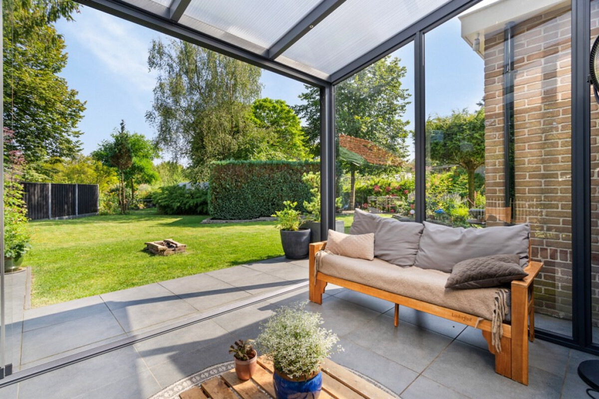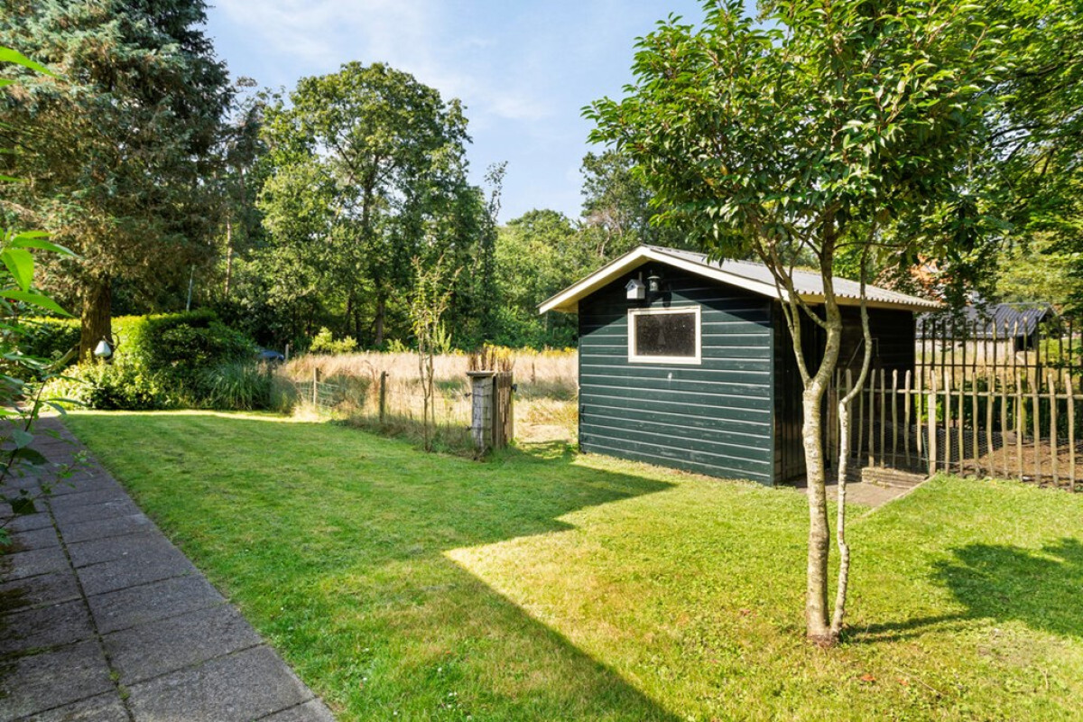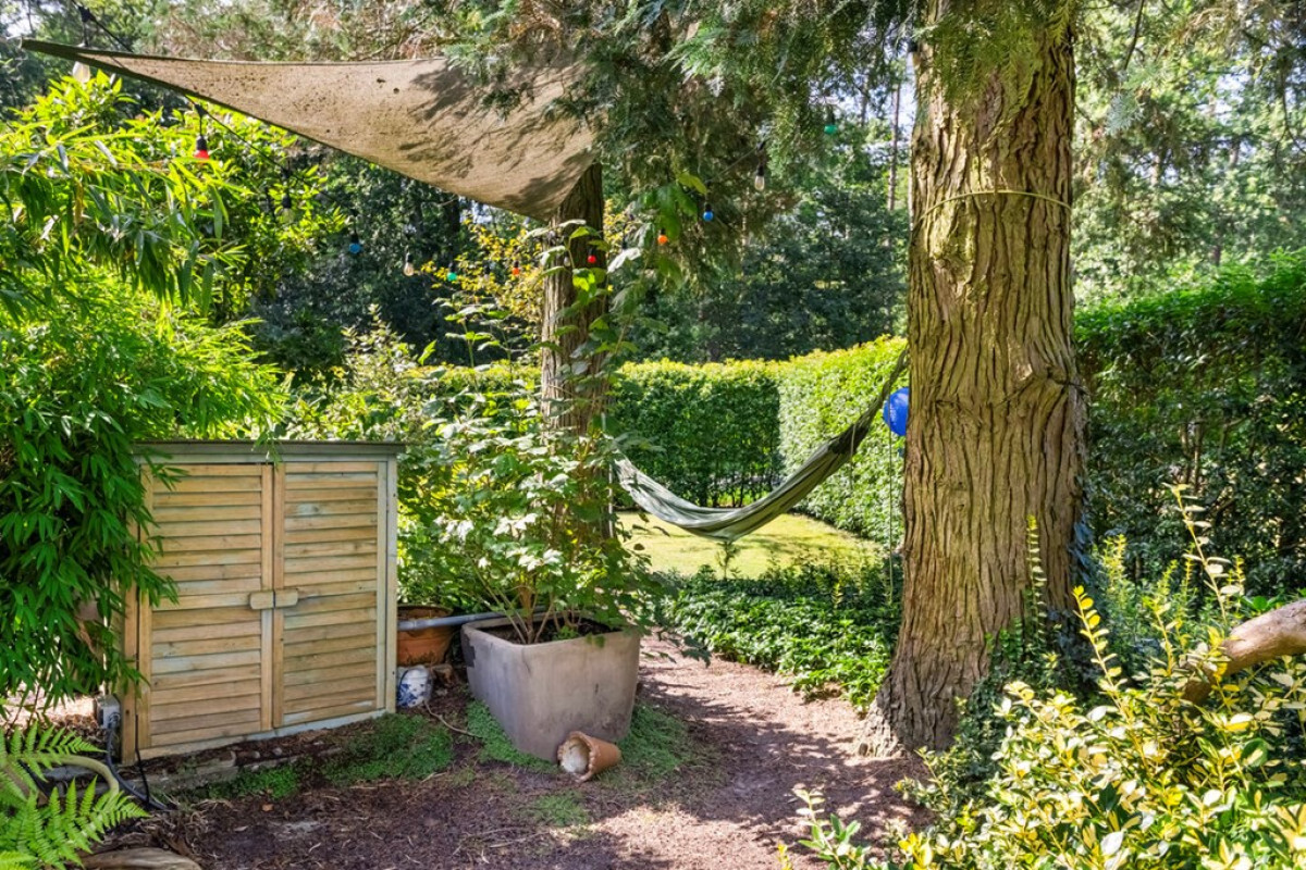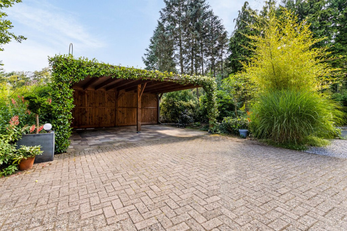 De villa is omgeven door een prachtige tuin, aan de rechterzijde voorzien van een eigen bosperceel en een moestuin van maar liefst 80m2. Met een doordacht tuinontwerp is er altijd een plekje in de zon of schaduw te vinden. Naast een overkapte carport geschikt voor 2 auto's en een motorfiets is er nog een open schuur om zaken op te slaan, of bijvoorbeeld een aanhanger of camper te stallen.