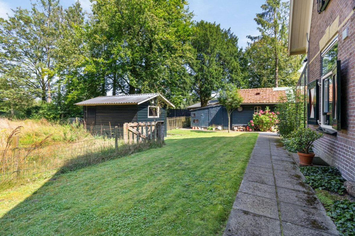 Naast de woning is een perceel weidegrond, met een chalet/stal waar je gemakkelijk schapen, geitjes of een pony kunt houden en nog een houten berging