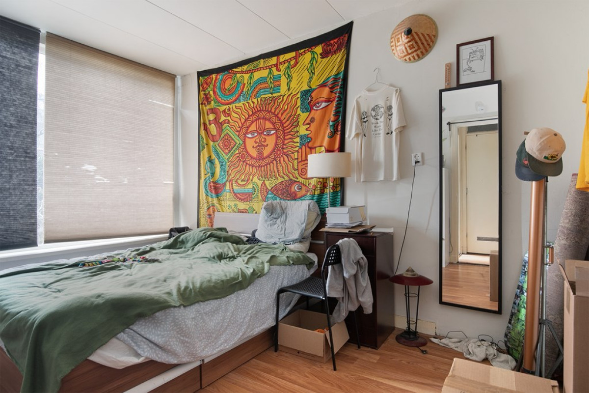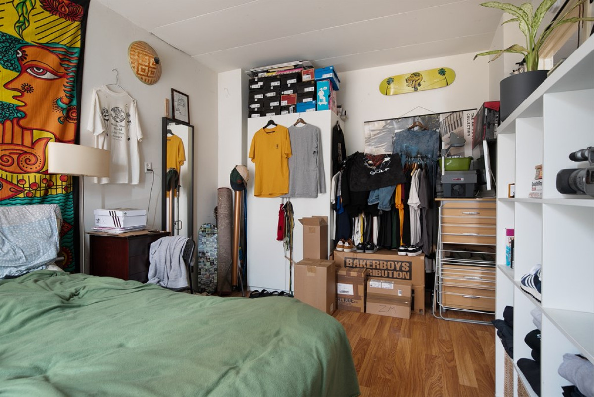 De slaapkamer, badend in natuurlijk licht dankzij de grote raampartijen, biedt veelzijdige mogelijkheden. Van een rustgevende nachtrust tot een praktische werkruimte, deze kamer voldoet aan al je wensen.