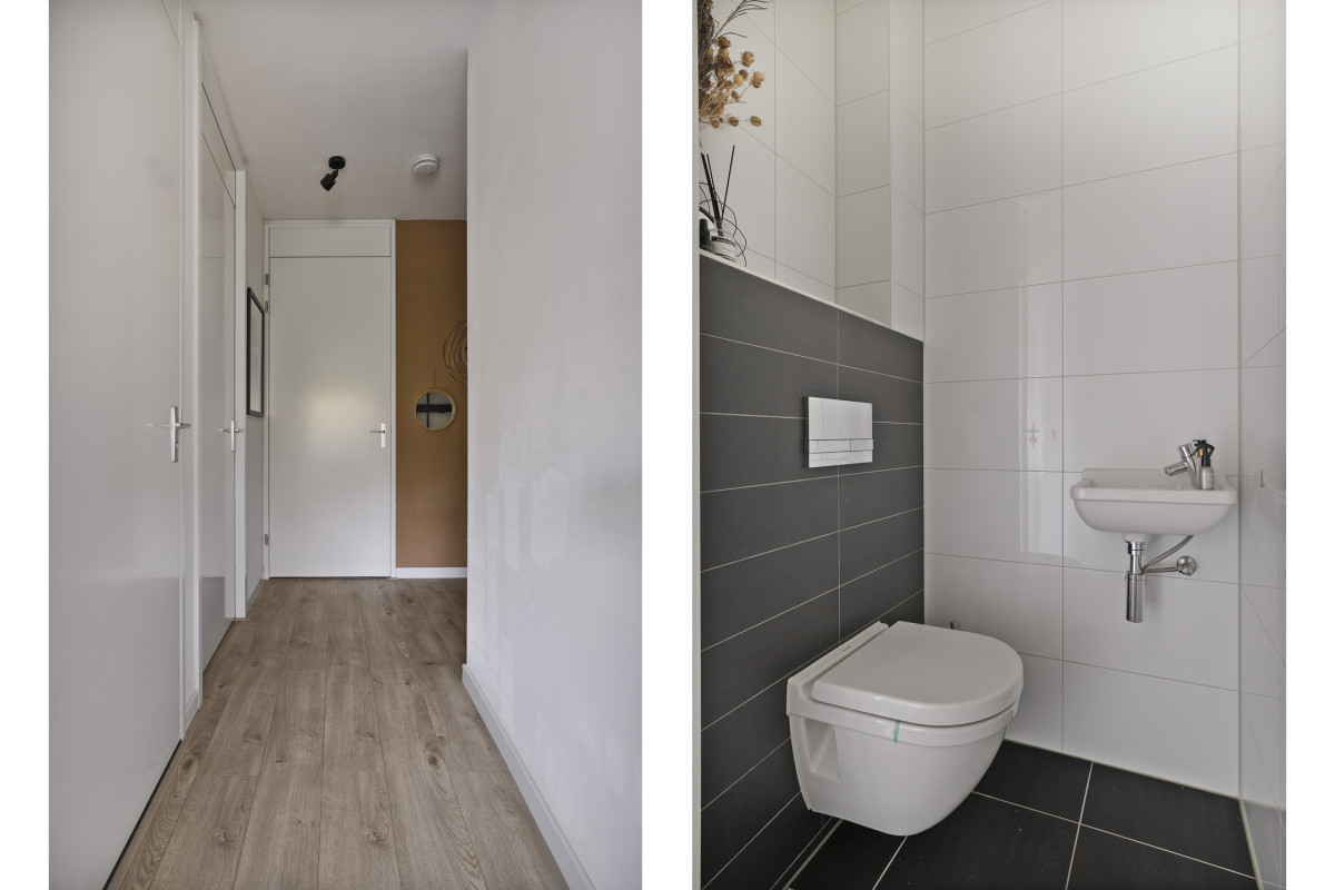 • Toiletruimte: Luxe afgewerkt toilet met fonteintje.
