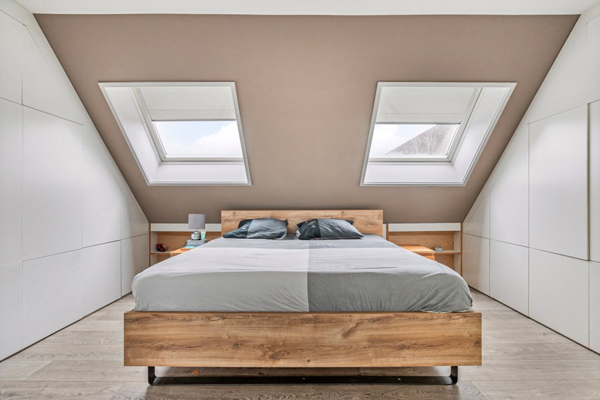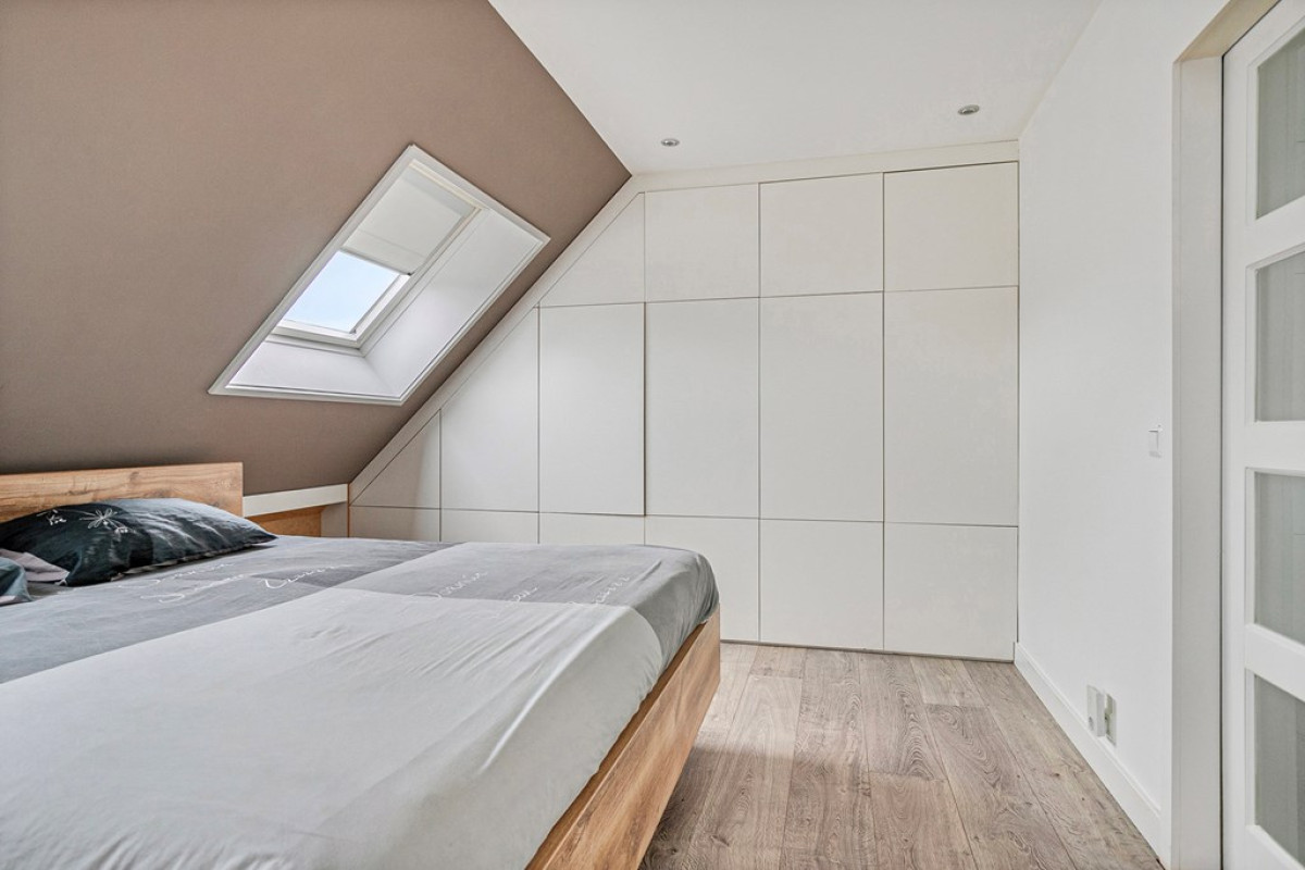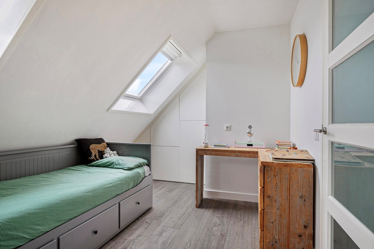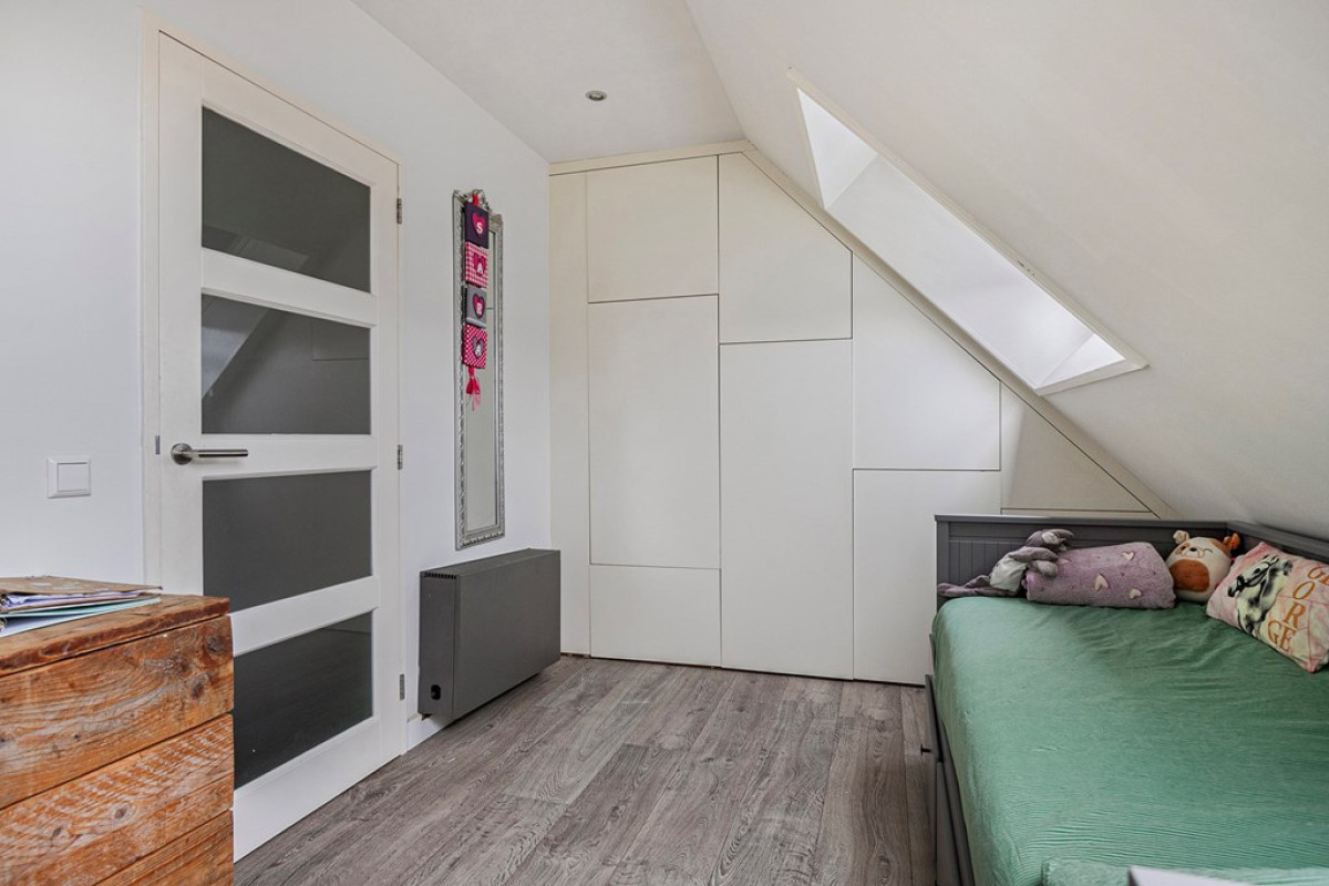 Elke slaapkamer is een heldere, luchtige ruimte dankzij de dakramen en biedt mogelijkheden om deze in te richten als kinderkamer of werkkamer. De grootste slaapkamer heeft het voordeel van vaste kasten, wat bijdraagt aan de slimme indeling van het appartement.