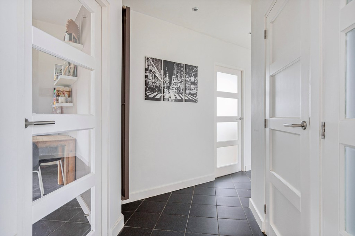 Het pand is te betreden vanuit een gemeenschappelijke entree, welke je middels een vaste trap naar de hal van dit sfeervolle appartement leidt. Vanuit de hal zijn een slaapkamer, separaat toilet, badkamer en keuken te betreden. Tevens opent de hal naar een lichte en uitnodigende woonkamer, waar je je zit- en eethoek naar wens kunt inrichten. De ruimte is perfect voor gezellige avonden, een spelletjesmiddag of om even rustig te werken met uitzicht op het water. Je kunt vanuit de woonkamer een tweede slaapkamer en het balkon betreden.