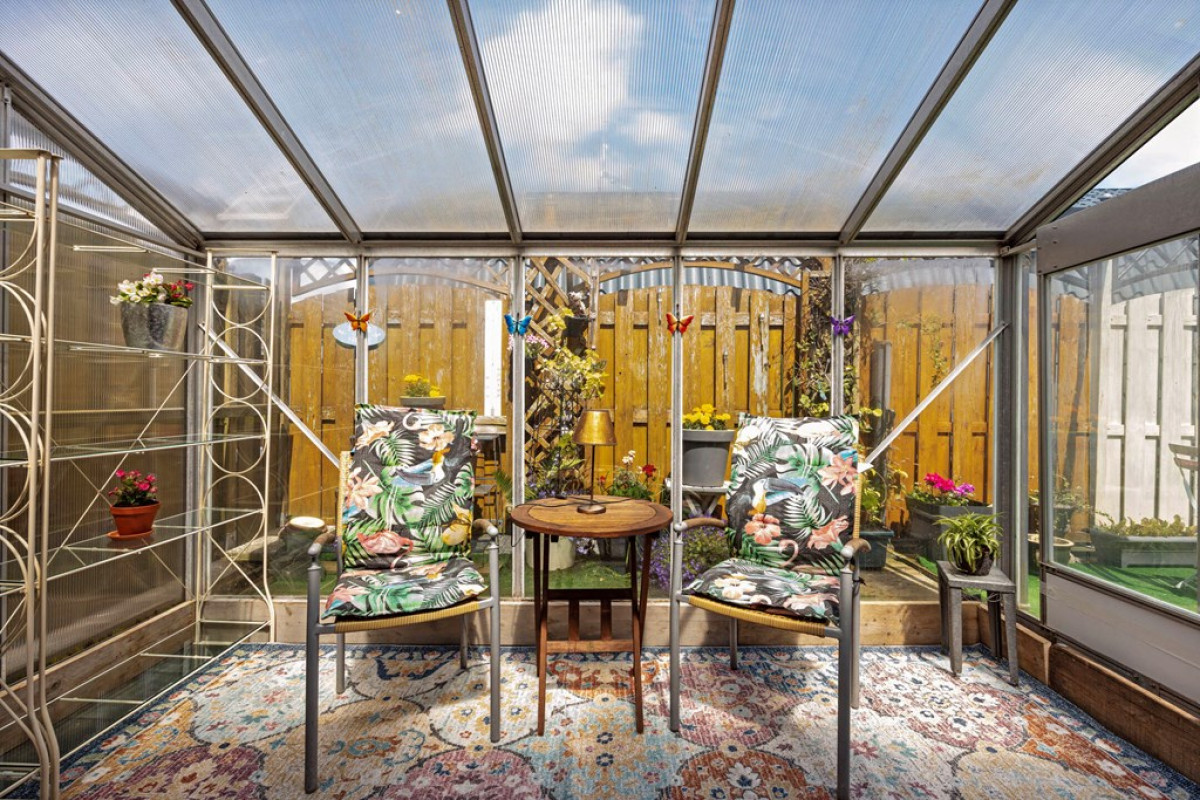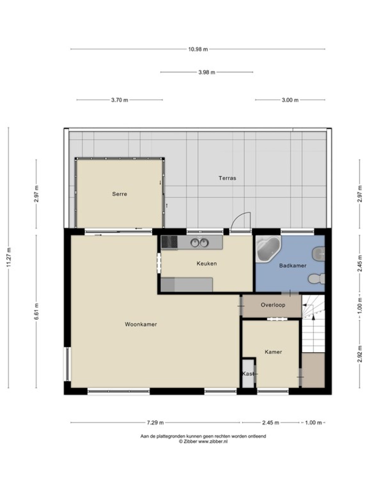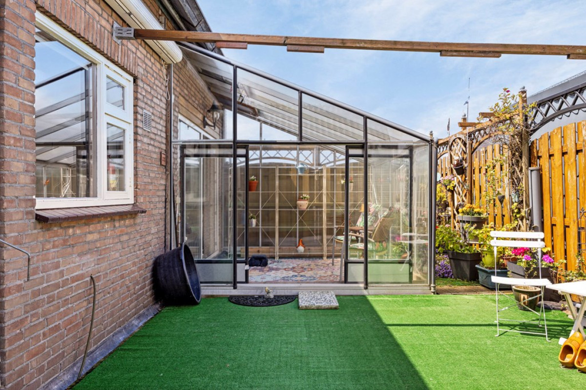 Het dakterras (50m²) loopt over de volle lengte van de woning en heeft geen inkijk. Het terras is gelegen aan de achterkant, waardoor je veel rust ervaart. Als het regent en/of koud is, kun je in de serre toch fijn zitten, waardoor je dus vrijwel het hele jaar met veel plezier van je dakterras kunt genieten....genieten met een grote 'G'!