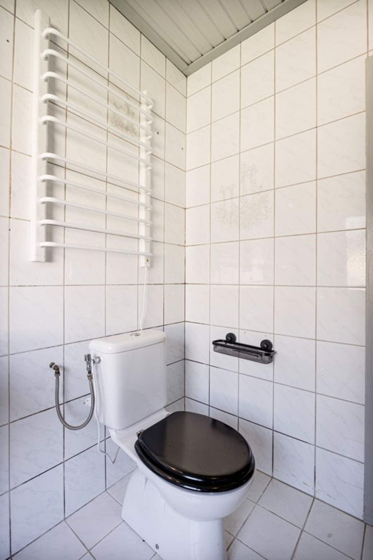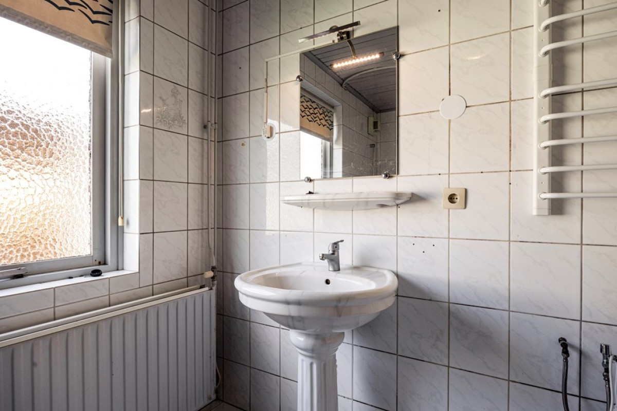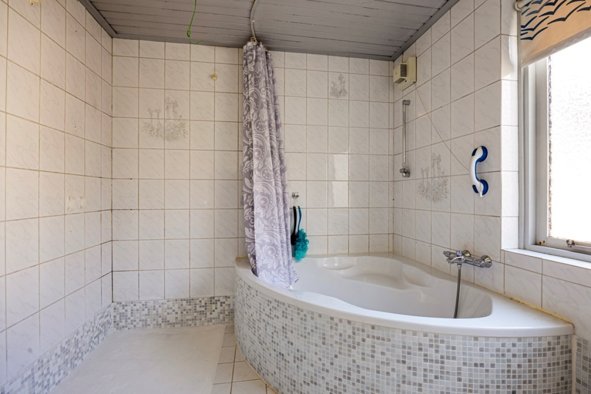 Op de eerste verdieping is ook de badkamer te vinden met douchehoek, hoekbad, toilet en wastafel.