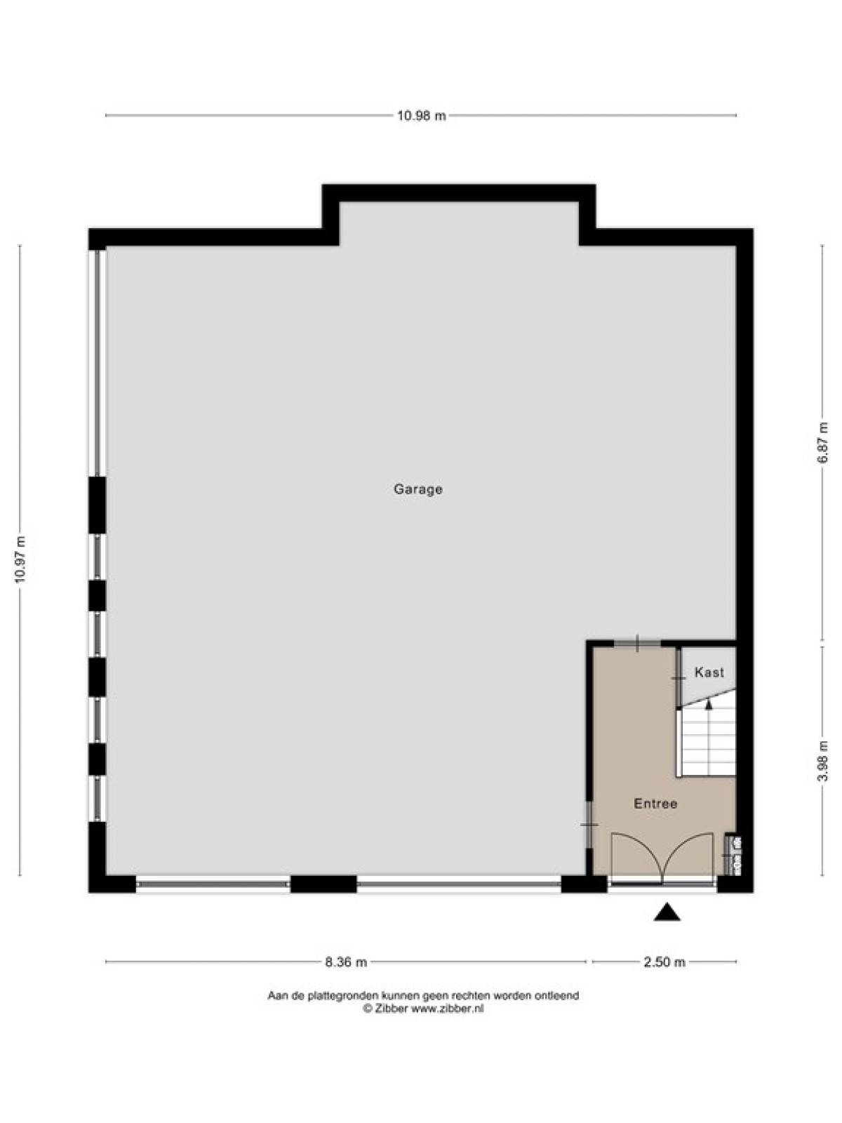 Beneden een ruimte van maar liefst 127m² met aan 2 kanten een garagedeur die hoog genoeg is voor o.a. een camper of bus.
