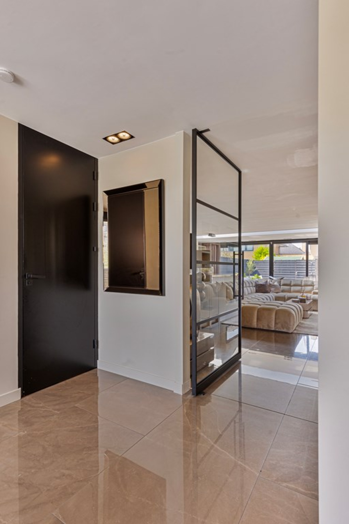 Zwarte Stalen Deuren: De op maat gemaakte zwarte stalen deuren van Bruynzeel geven de woning een moderne en stijlvolle uitstraling.